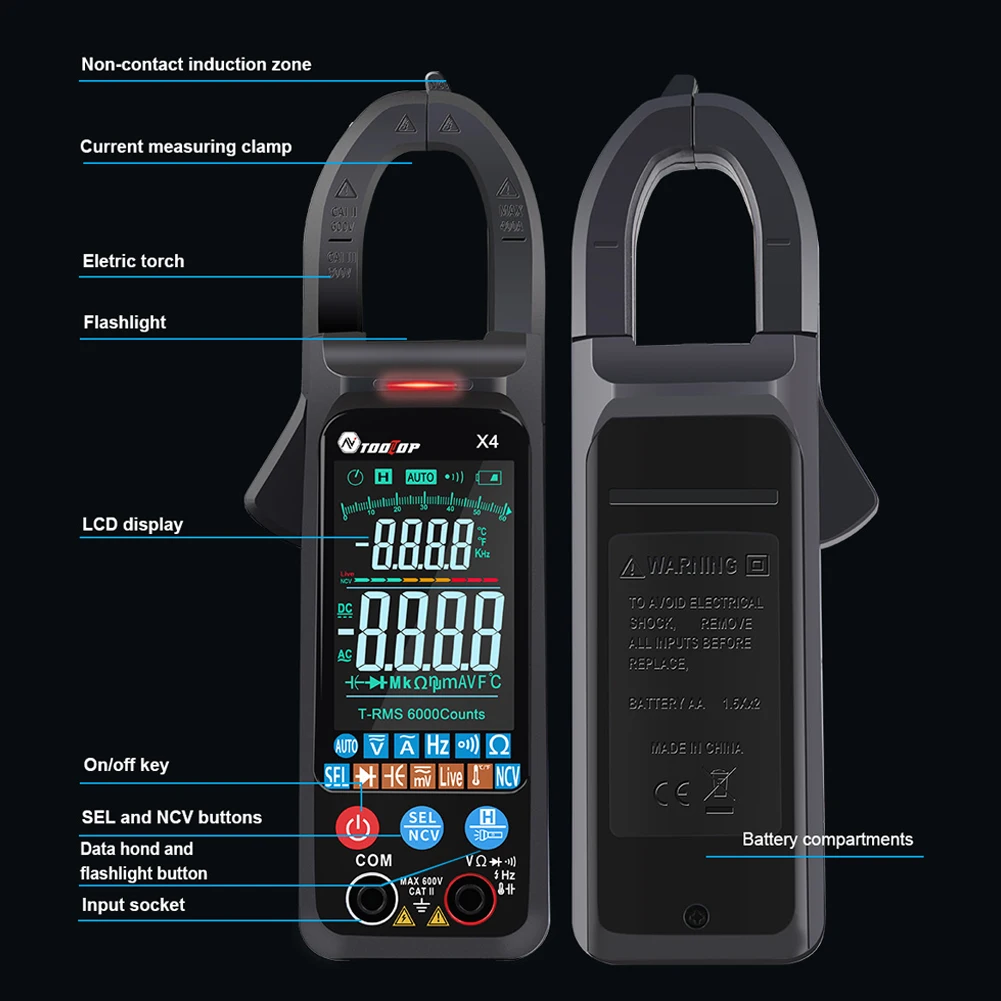 Этот мощный клещи-идеальный помощник в вашей повседневной работе или ежедневном использовании. Он имеет различные функции измерения, такие как измерение напряжения переменного тока и тока, измерение непрерывности и сопротивления и т. д., которые могут удовлетворить большинство ваших потребностей. Приходите и попробуйте, это не подведет вас.