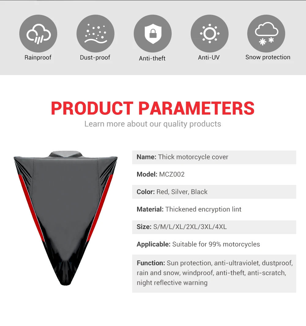 -Защищает ваш мотоцикл от солнца светильник, воды, птиц, деревьев, пыли и грязи