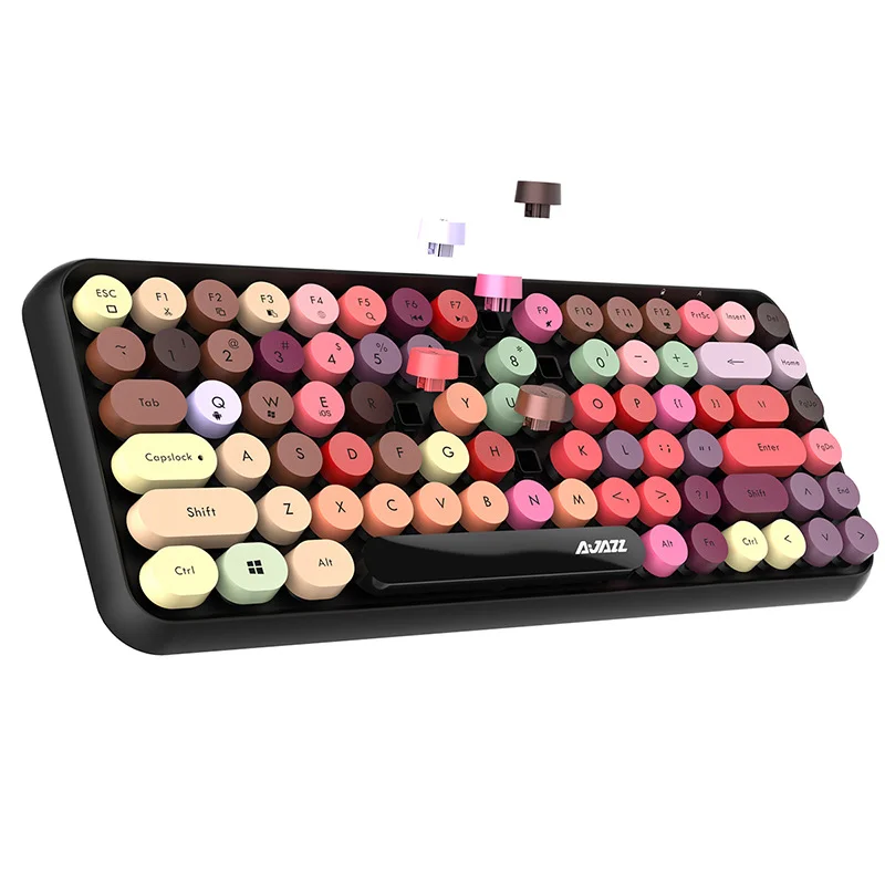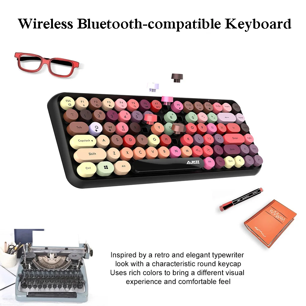 Новинка AJAZZ шоколад ретро пишущая машинка круглые клавиши 84 клавиши 308i Матовая Сенсорная Беспроводная BT клавиатура для Win/iOS/Android с разными цветами