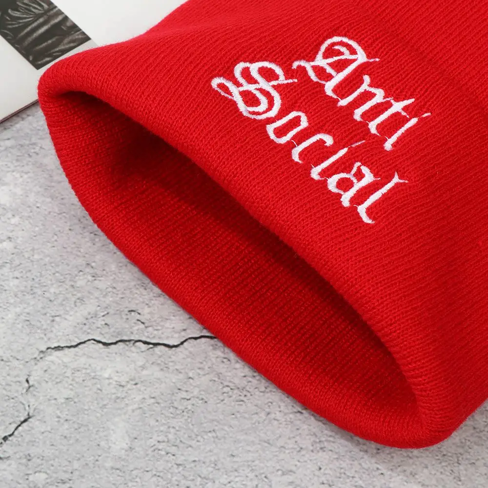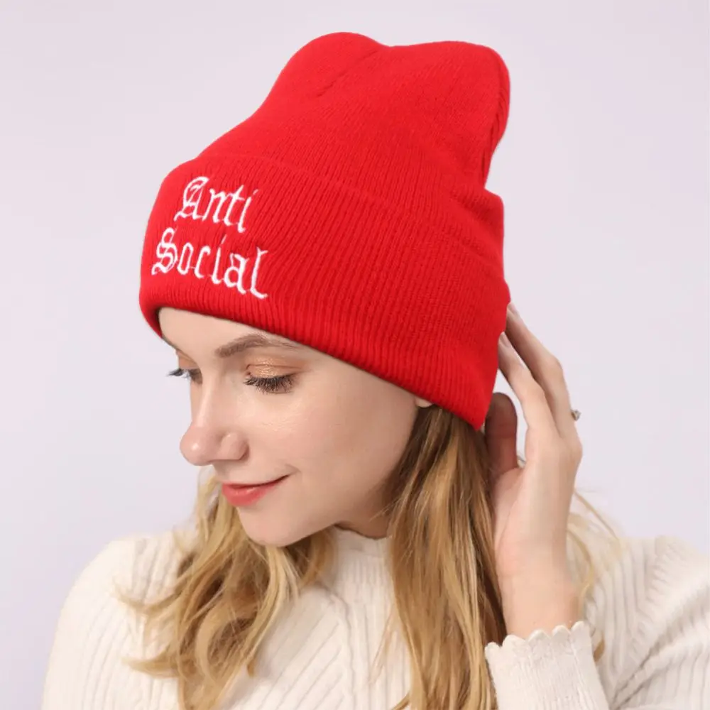 Fashion Letter Embroidery Knitted Hat Anti You Anti Social Patterns Autumn Winter Knitting Caps