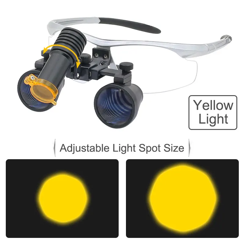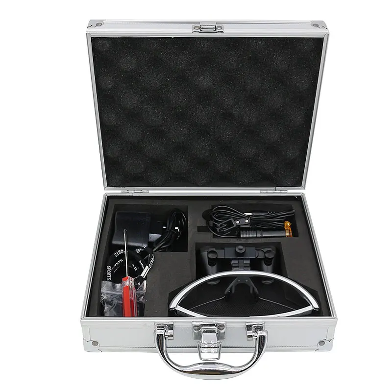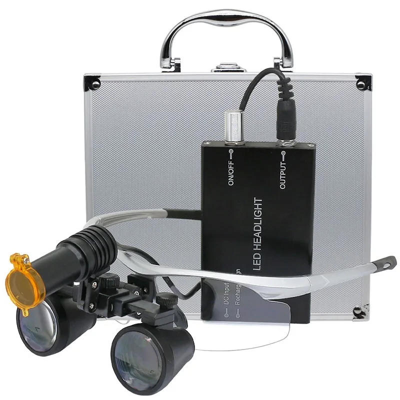 2.5X/3.5X Стоматологическая Лупа с желтым фильтром 5 Вт, литий-ионная батарея 320-420 мм, бинокулярная Лупа с алюминиевым чемоданом