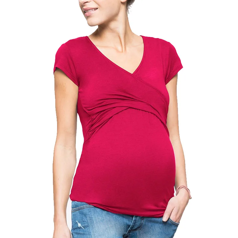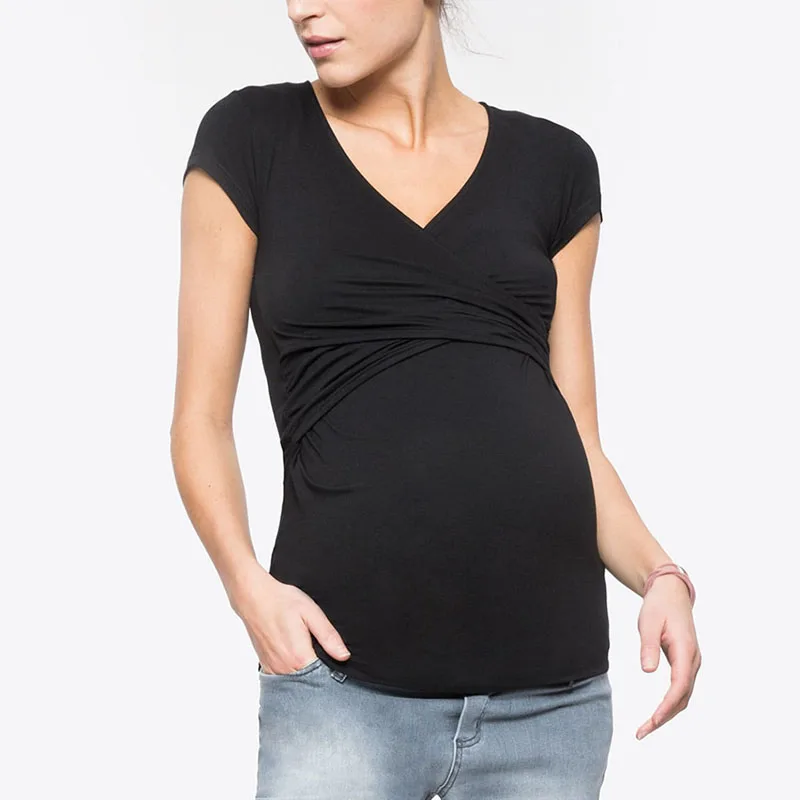 Женская однотонная блузка с коротким рукавом для грудного вскармливания, Одежда для беременных, Одежда для беременных, летняя Новинка