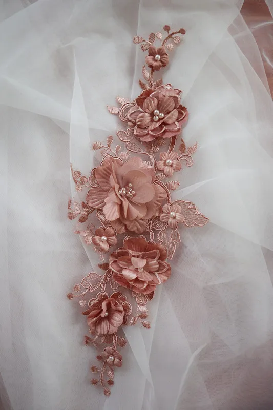 Один Изысканный красный 3D Цветы Кружева Аппликации патчи, бисером 3d Цветочные вышитые кружева аппликация для головной убор кутюр haut