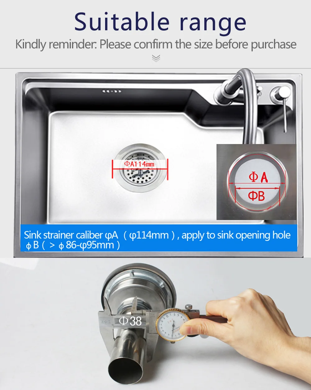 Размер: верхний диаметр сита-114 мм, подходит для раковины, диаметр отверстия-86-95 мм