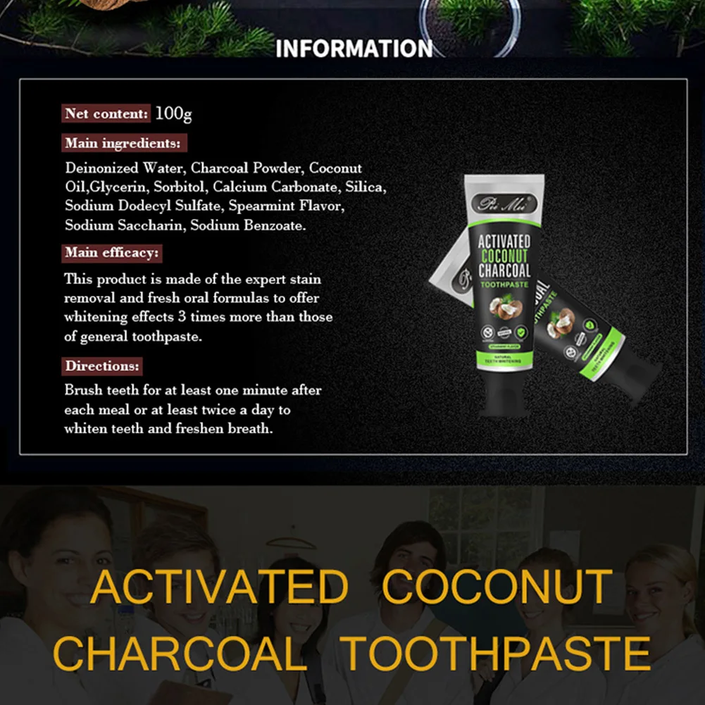 * 1. Ингредиенты: деинонизированная вода, древесный уголь, кокосовое масло, глицерин, сорбитол, карбонат кальция, кремнезем, натрий додецилсульфат, мятный аромат, сахарин натрия, бензоат натрия
