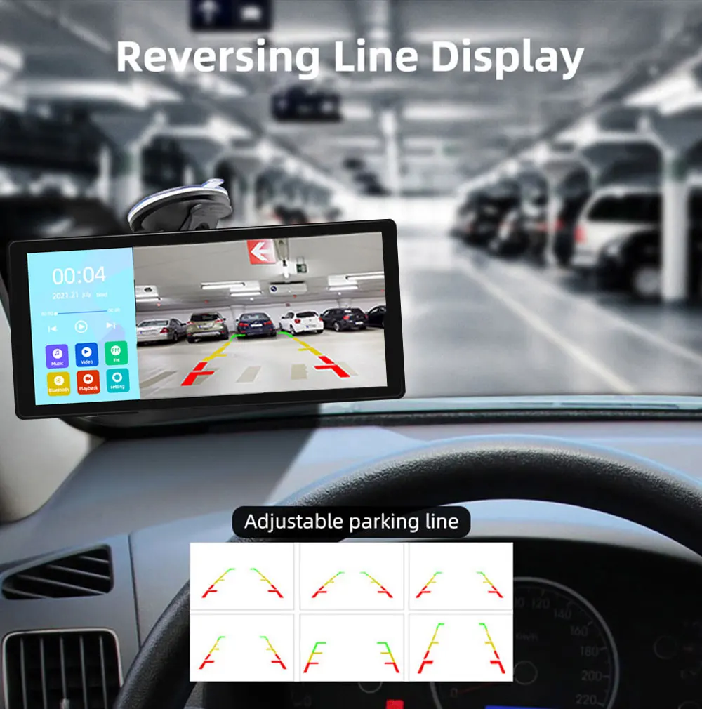 Монитор может показывать обратную линию во время заднего хода. Двусторонний вход AHD, приоритетный дисплей заднего хода, после установки парковочного места с камерой, изображение заднего хода будет автоматически переключаться, когда передача включена. Поддержка установки линии заднего хода самостоятельно.