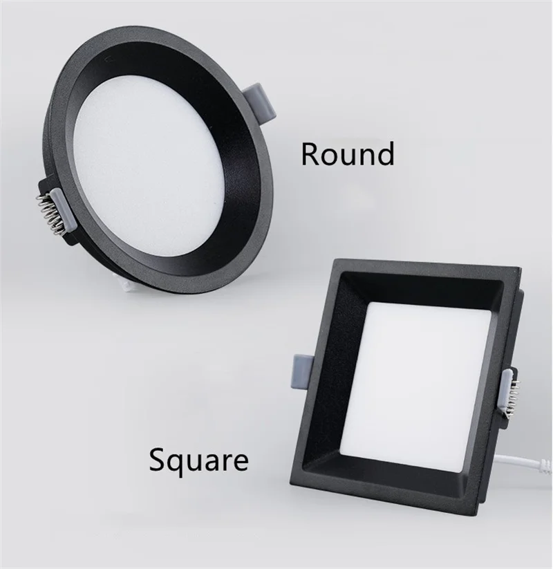 Черная 5 Вт 9 Вт 12 Вт 16 Вт потолочные светильники круглая квадратная Встраиваемая Светодиодная лампа