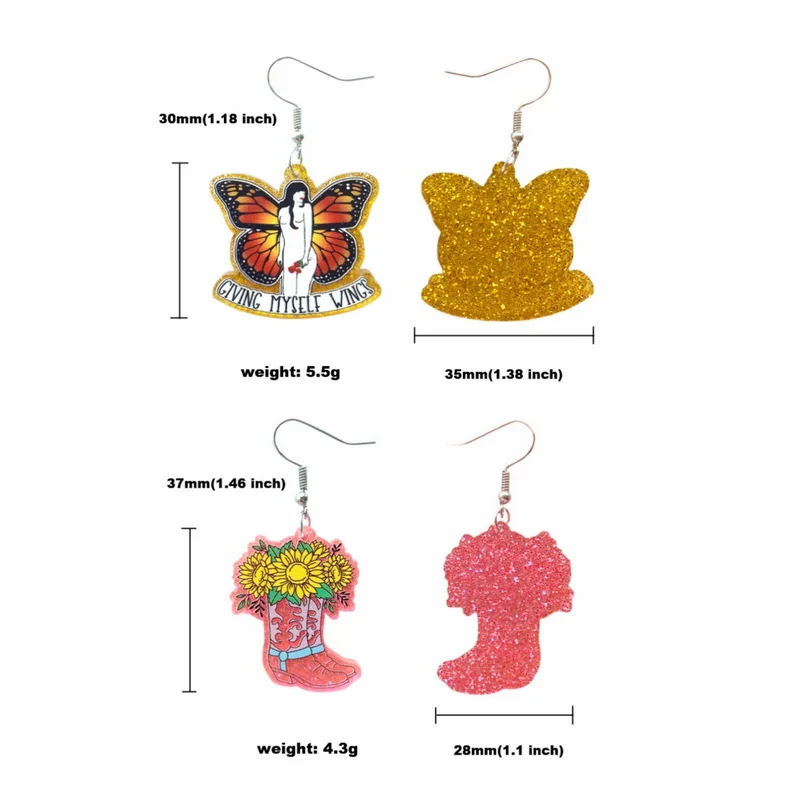 Милые женские ковбойские ботинки с подсолнухами, женские крылья бабочки, Булл, Череп, розы, бант, футбол, регби, блестящие акриловые висячие серьги