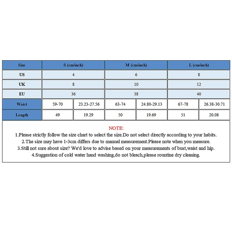 S = US4 = EU36 = UK8 (см/дюйм) Талия: 59-70/23,23-27,56, длина: 49/19,29