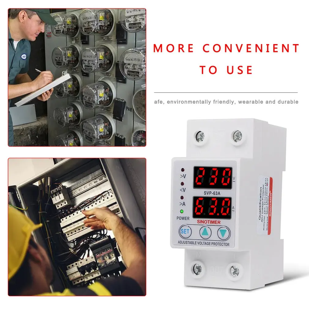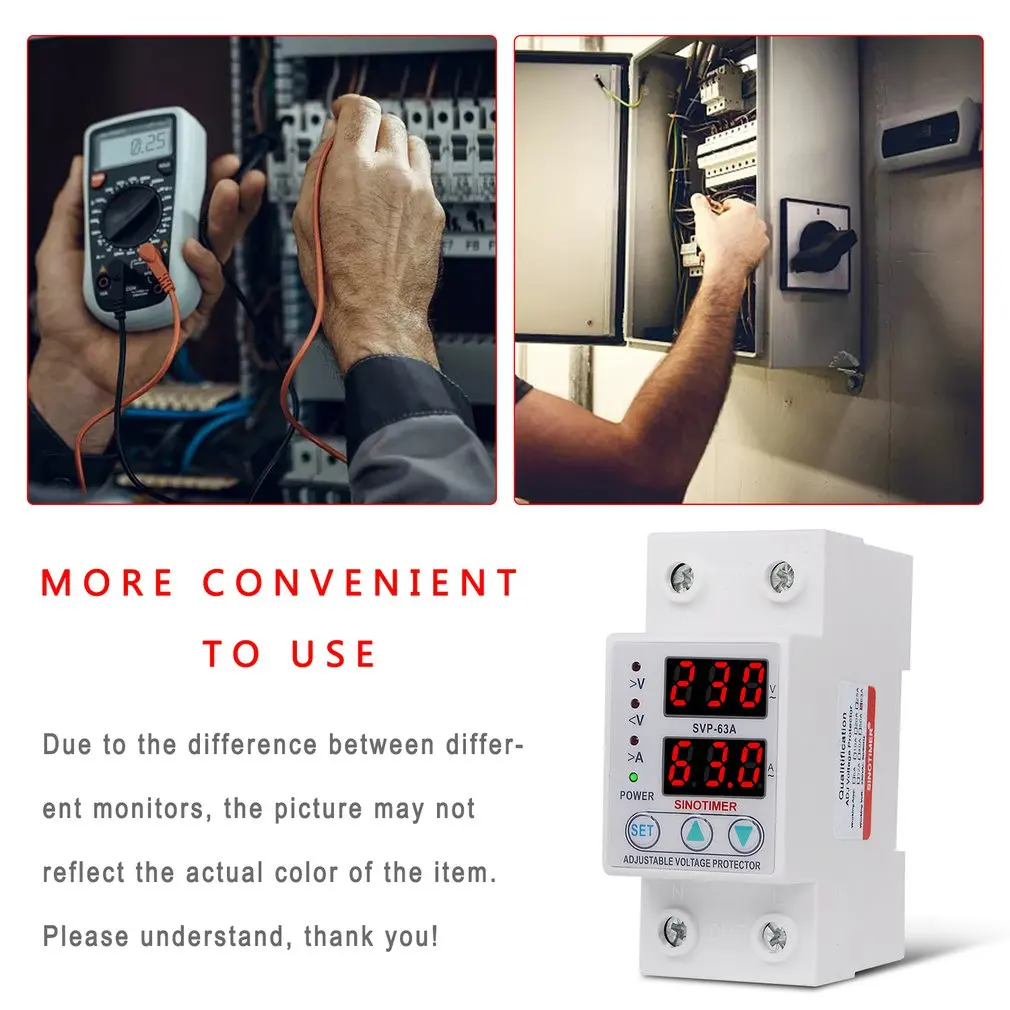 Особенности: 1. Устройства автоматического восстановления перенапряжения и защиты от пониженного напряжения соответствуют модульным стандартам проектирования. 2. Когда источник питания нестабильный, функция защиты будет автоматически активирована. Как только напряжение превышает ограниченный диапазон продукта, оно автоматически отключается для защиты безопасности электрического оборудования и персонала. 3. Когда источник питания вернется к нормальному, устройства снова включатся в течение 30 секунд. 4. Когда источник питания является нормальным, зеленый светильник индикатора показывает. Когда источник питания перенапряжения или низкого напряжения, красный индикатор показывает. 5. Функции: защита от перенапряжения; Защита от перегрузки по току; Автоматическое восстановление; Вольтметр; Амперметр. Описание: Мониторы перенапряжения и напряжения имеют несколько функций для защиты электрического оборудования от повреждений. Характеристики: Бренд: SINOTIMER Номер модели: SVP-63A Мощность питания: 230 В переменного тока, 50/60 Гц Максимальная мощность загрузки: 63A Диапазон защиты от перенапряжения: 230 В ~ 300 (по умолчанию: 270 в) Диапазон значений защиты от пониженного напряжения: 210 В ~ 145 в (по умолчанию: 170 в) Потребляемая мощность: <2 Вт Срок службы электрического оборудования: 4000 раз Размеры: 65*36*85 мм Установка: 35 мм din-рейка Посылка включает в себя: 1 * Контроль напряжения и напряжения