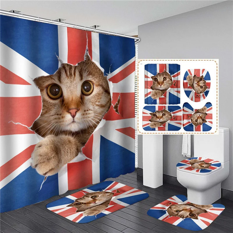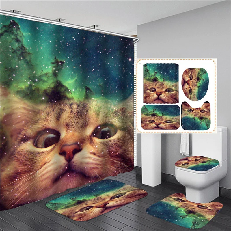 Название: прикольные кошачьи животные занавески для душа с принтом набор для ванной с противоскользящими фланелевые коврики для ванной домашний ковер коврики для двери Чехлы для унитаза