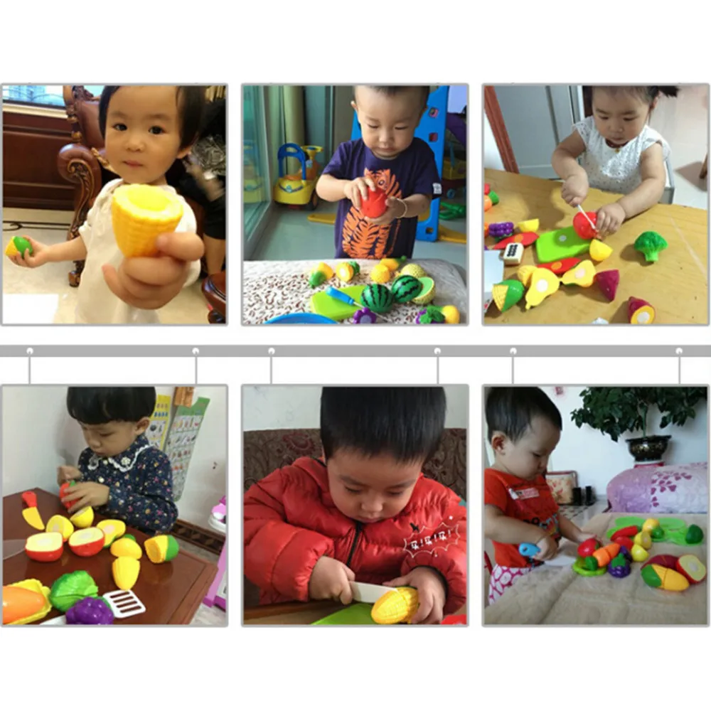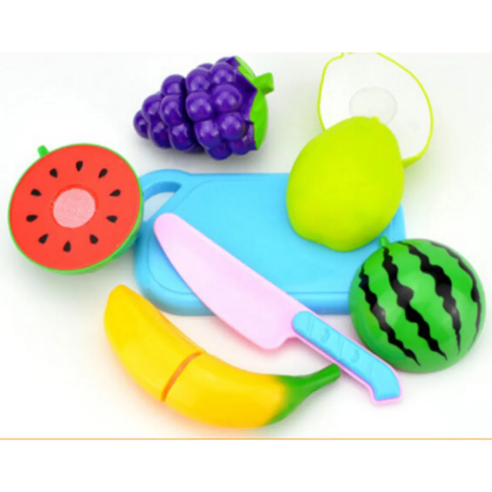 Поставляется с пластиковым ножом для детей, чтобы вырезать игрушки фруктов и овощей