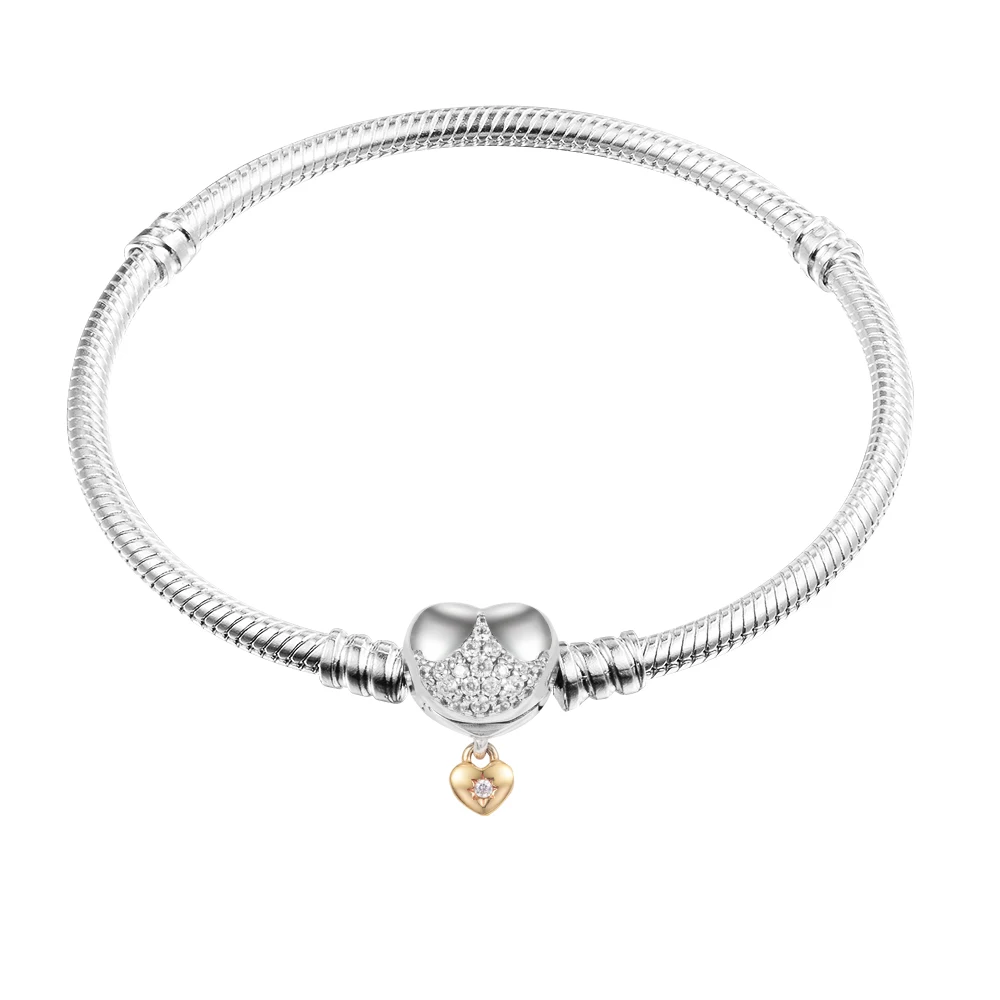 Оригинальный браслет моменты Сердце застежка змеиная цепочка 100% Стерлинговое Серебро 925 пробы ювелирные изделия Подходит Шарм бусы DIY для женщин подарок B130