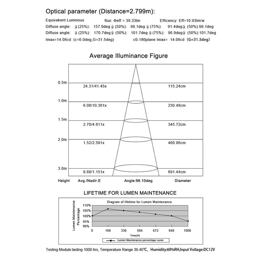 * 9. Светодиодный угол луча: 120 °