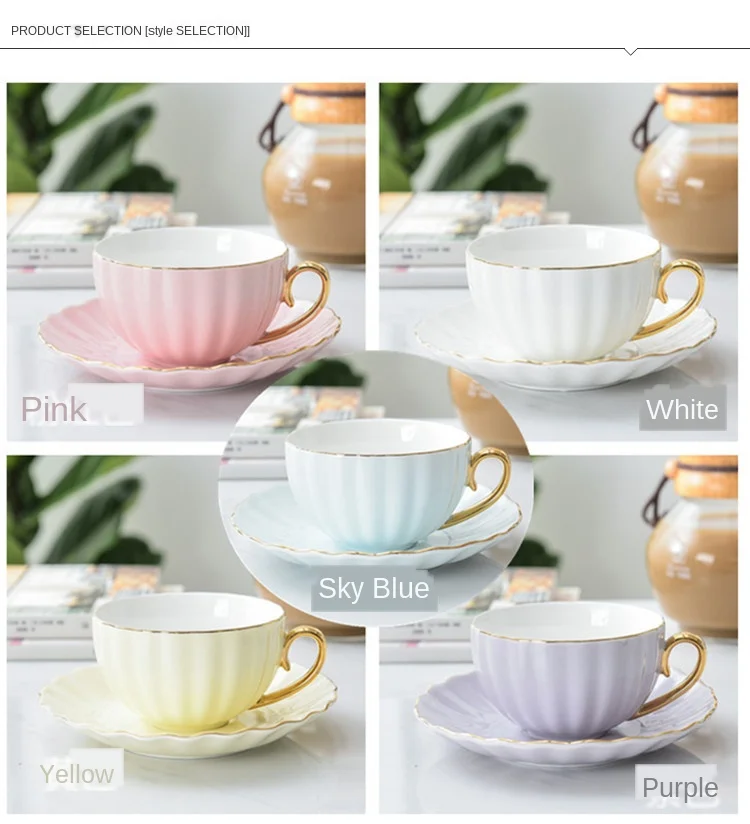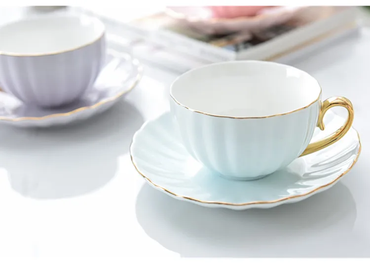 Pink and lovely gold-painted low-bone china English-style black tea cup Europeanstyle ceramic coffee cup and saucerafternoon tea