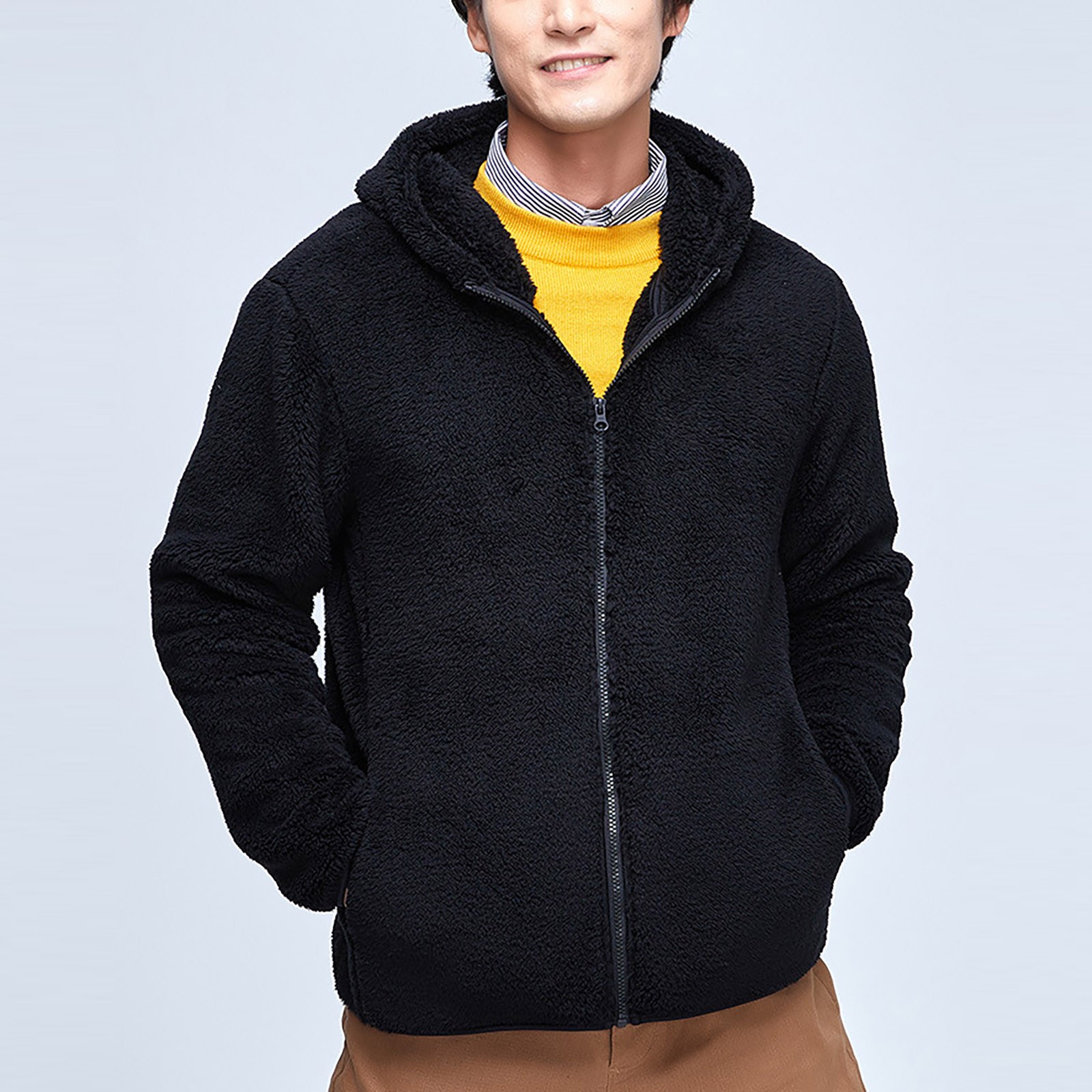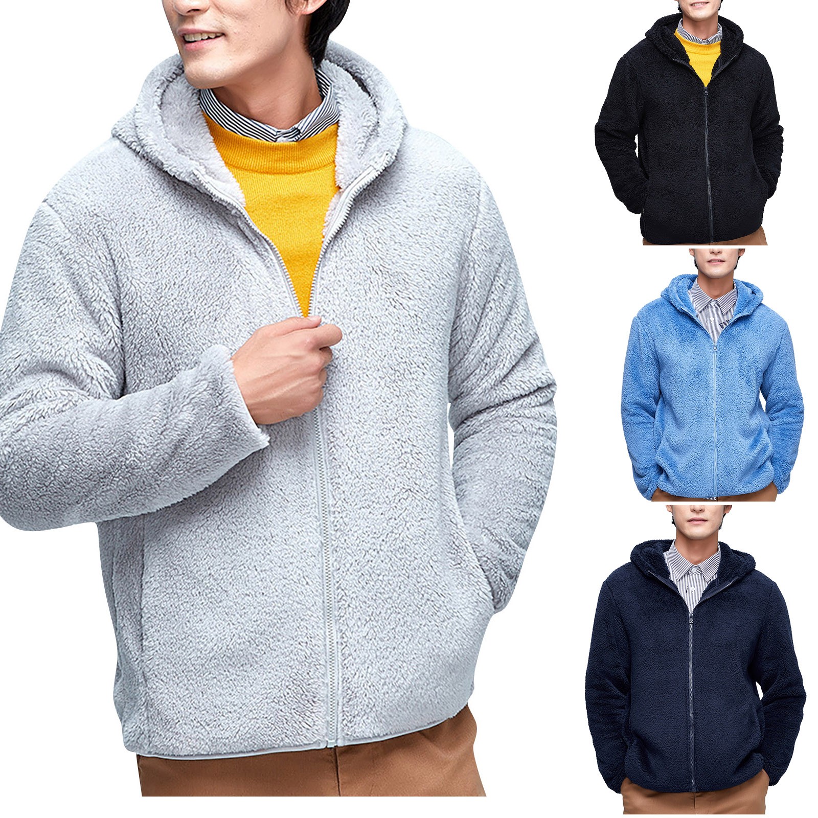 Однотонное флисовое теплое двустороннее плюшевое пальто, утолщенное пальто для мужчин