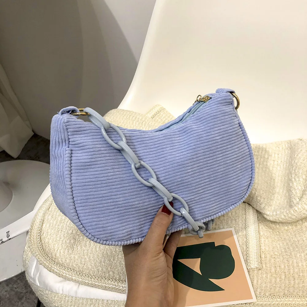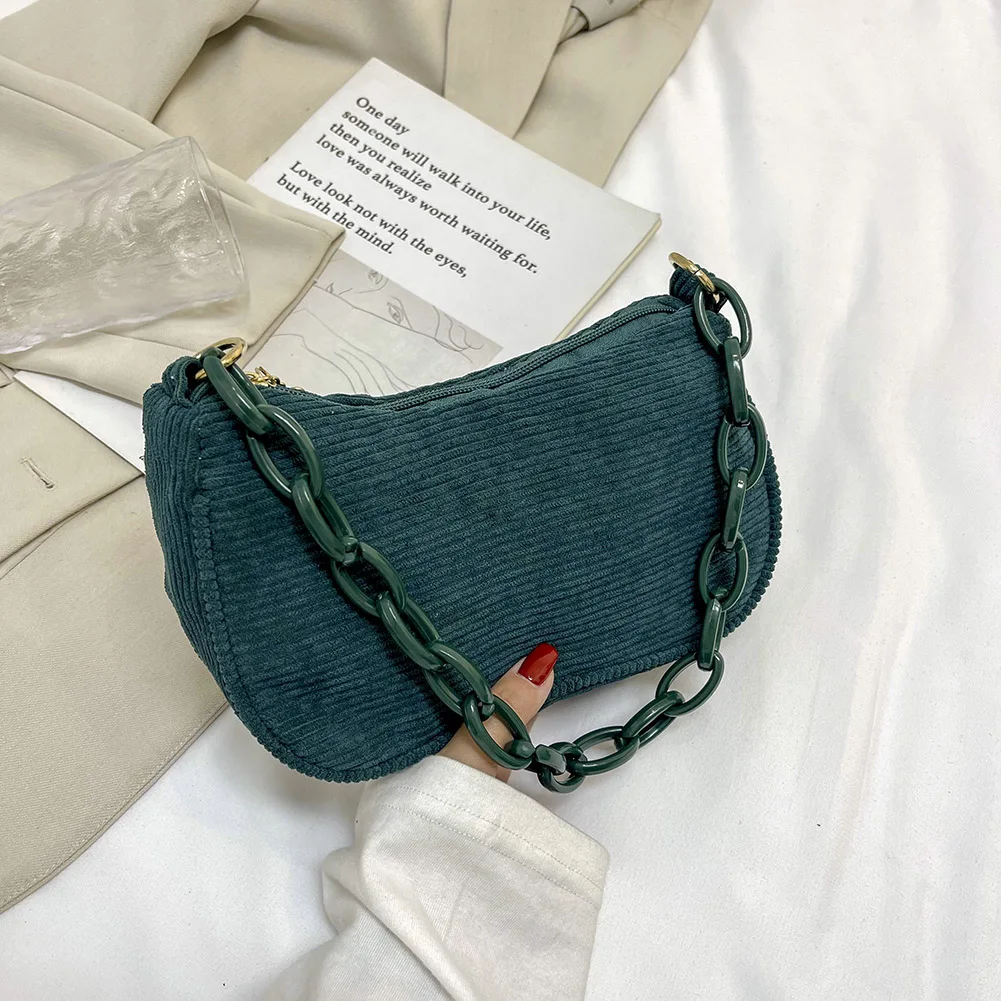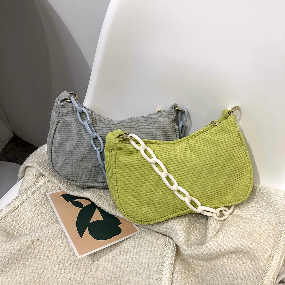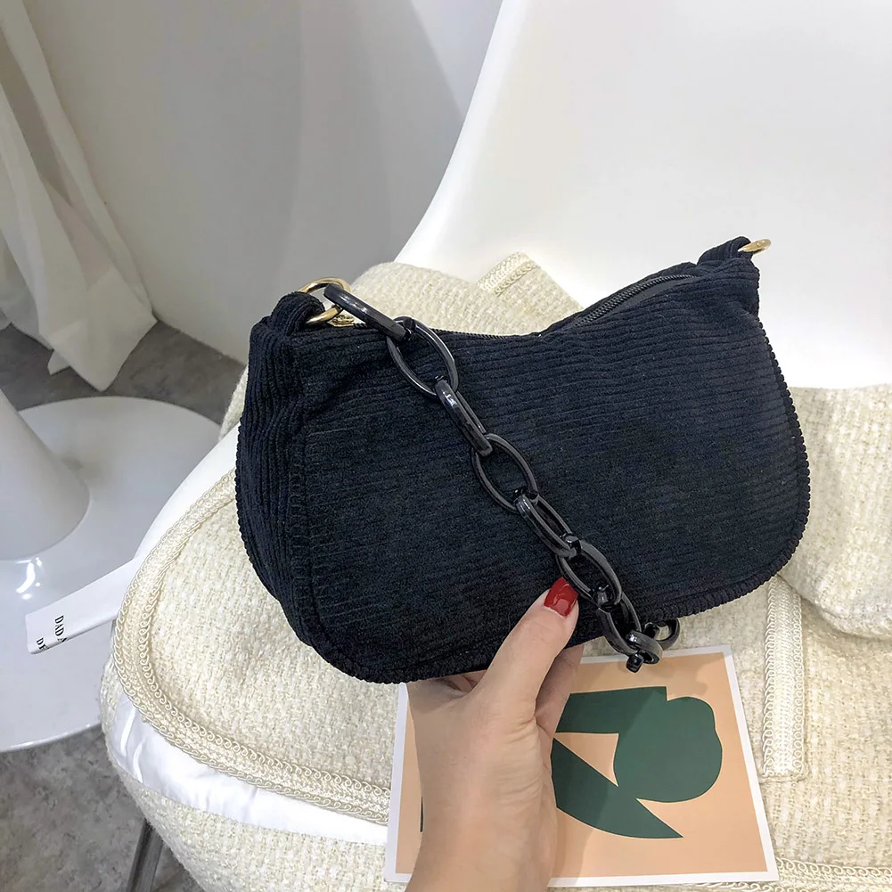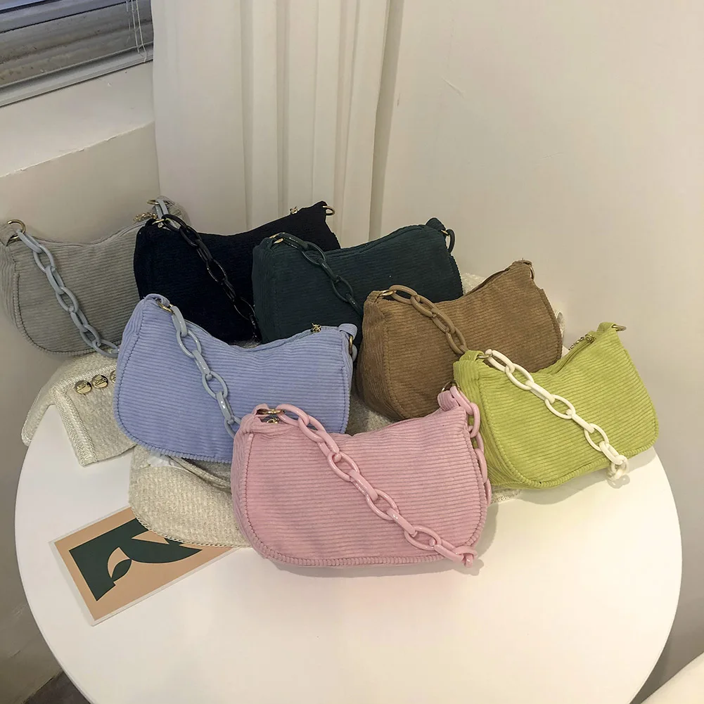 Женская винтажная Вельветовая однотонная сумка на плечо, Дамская Повседневная маленькая сумочка с цепочкой