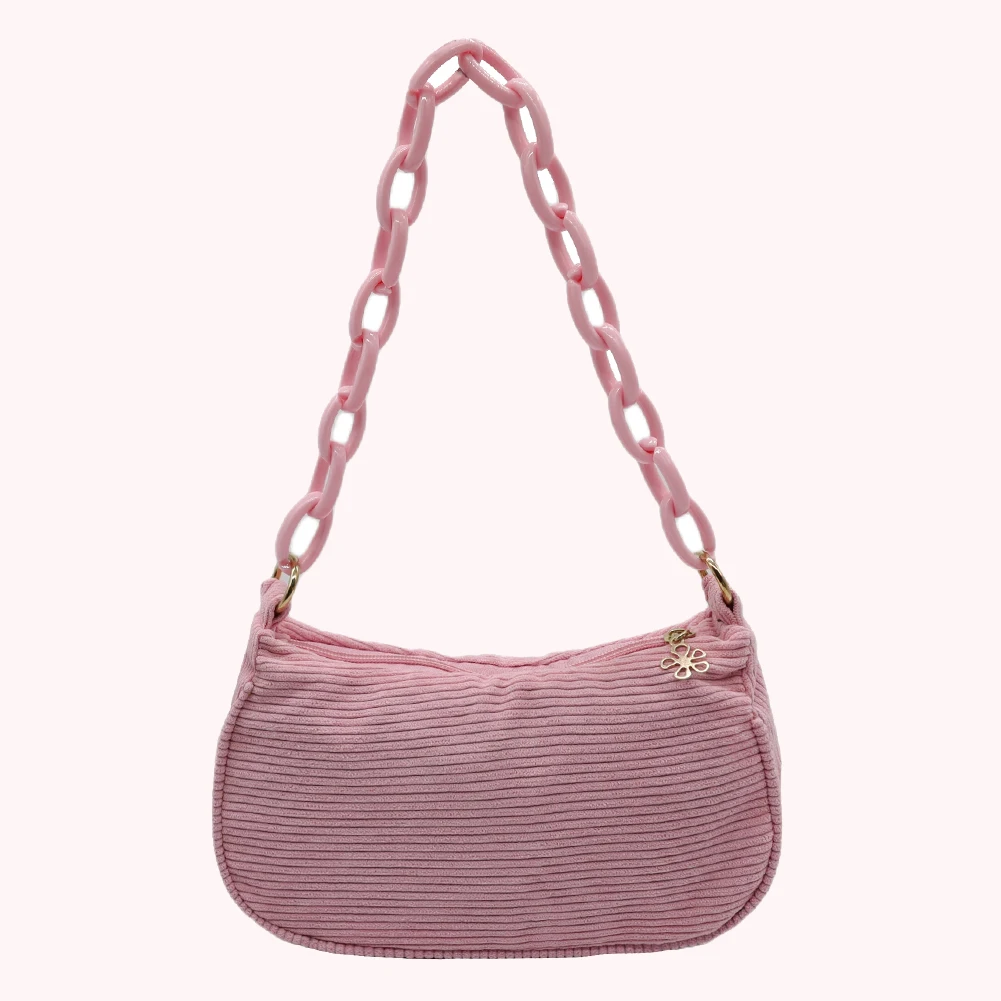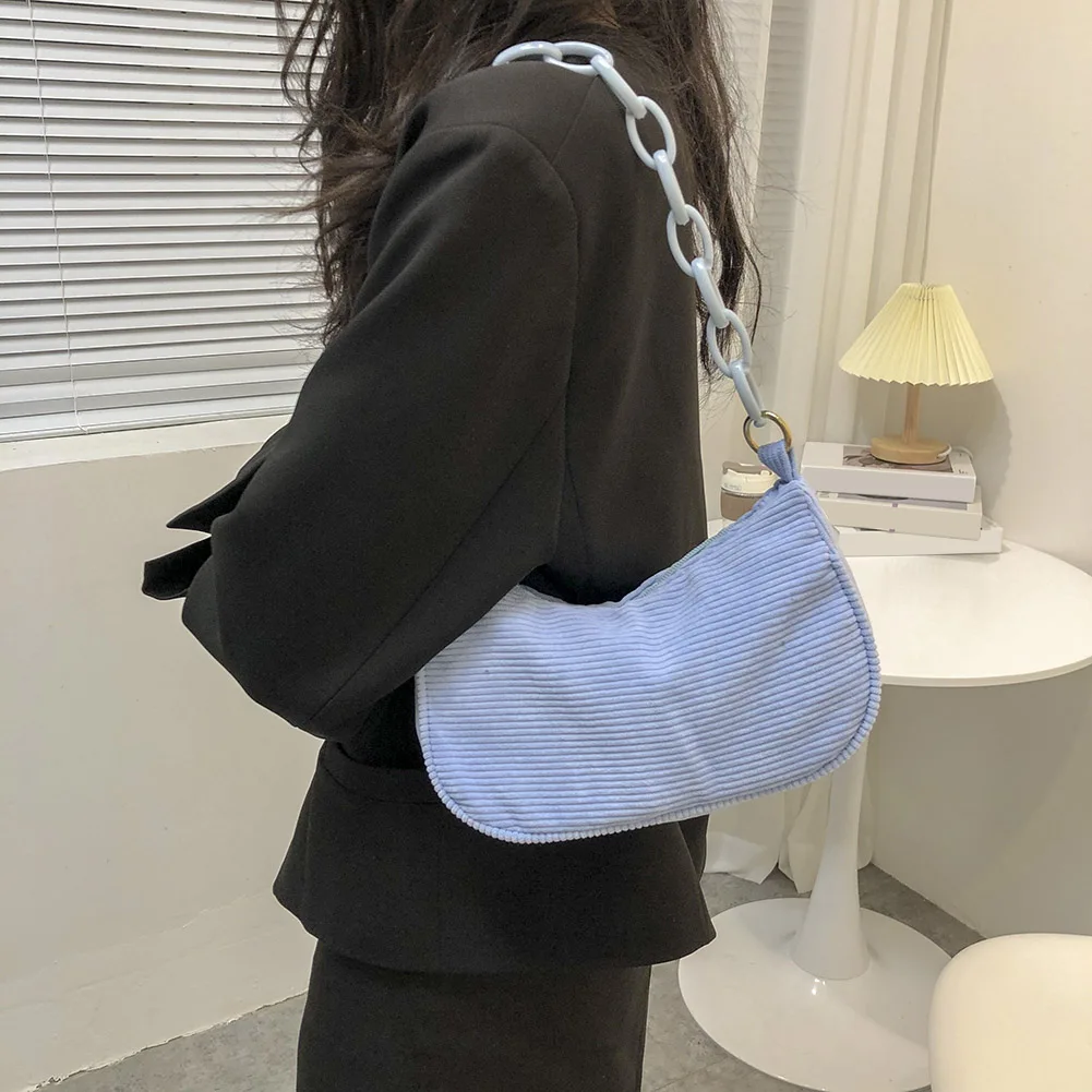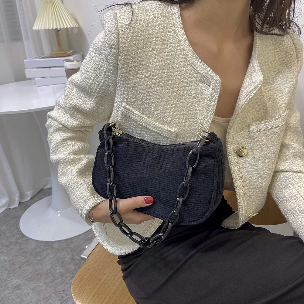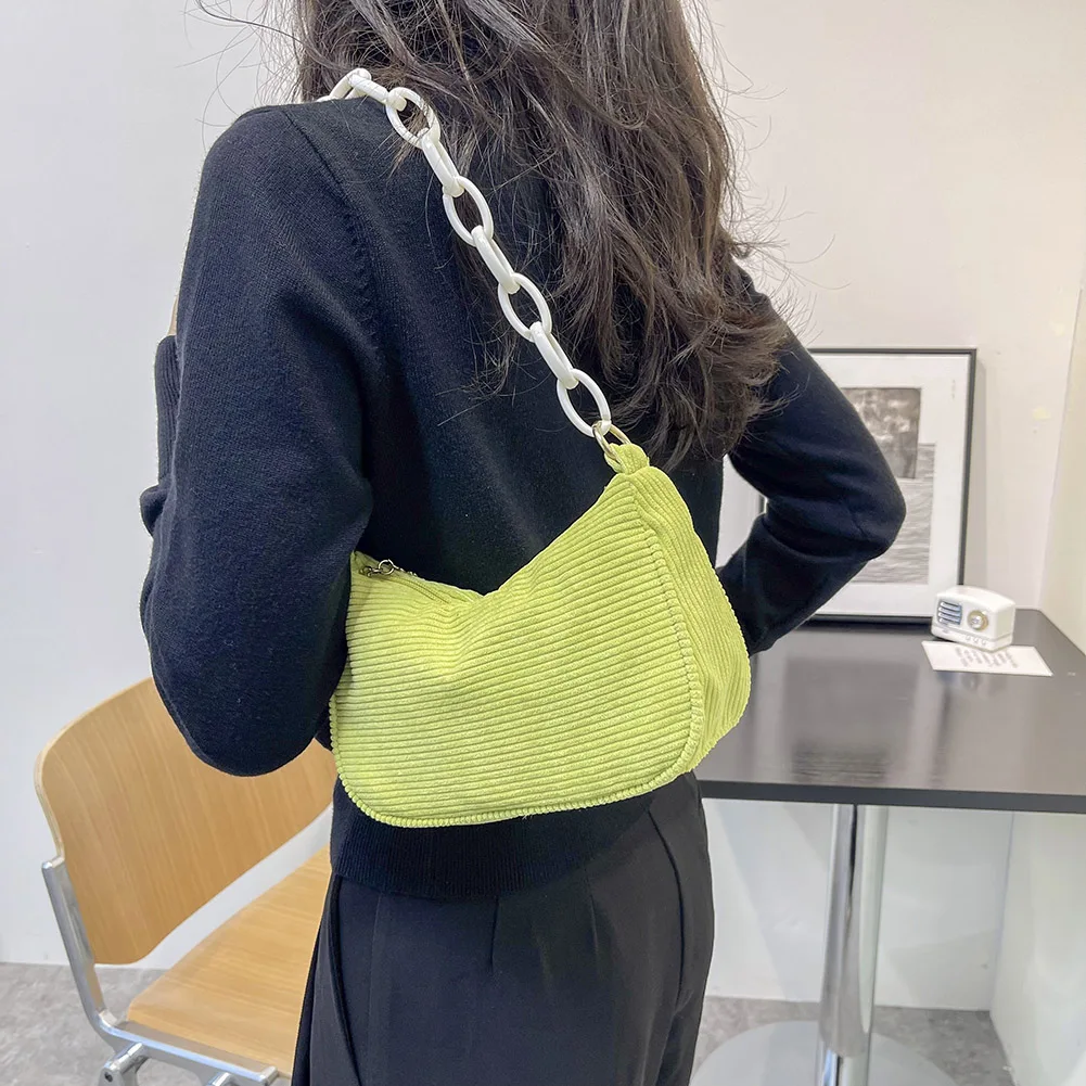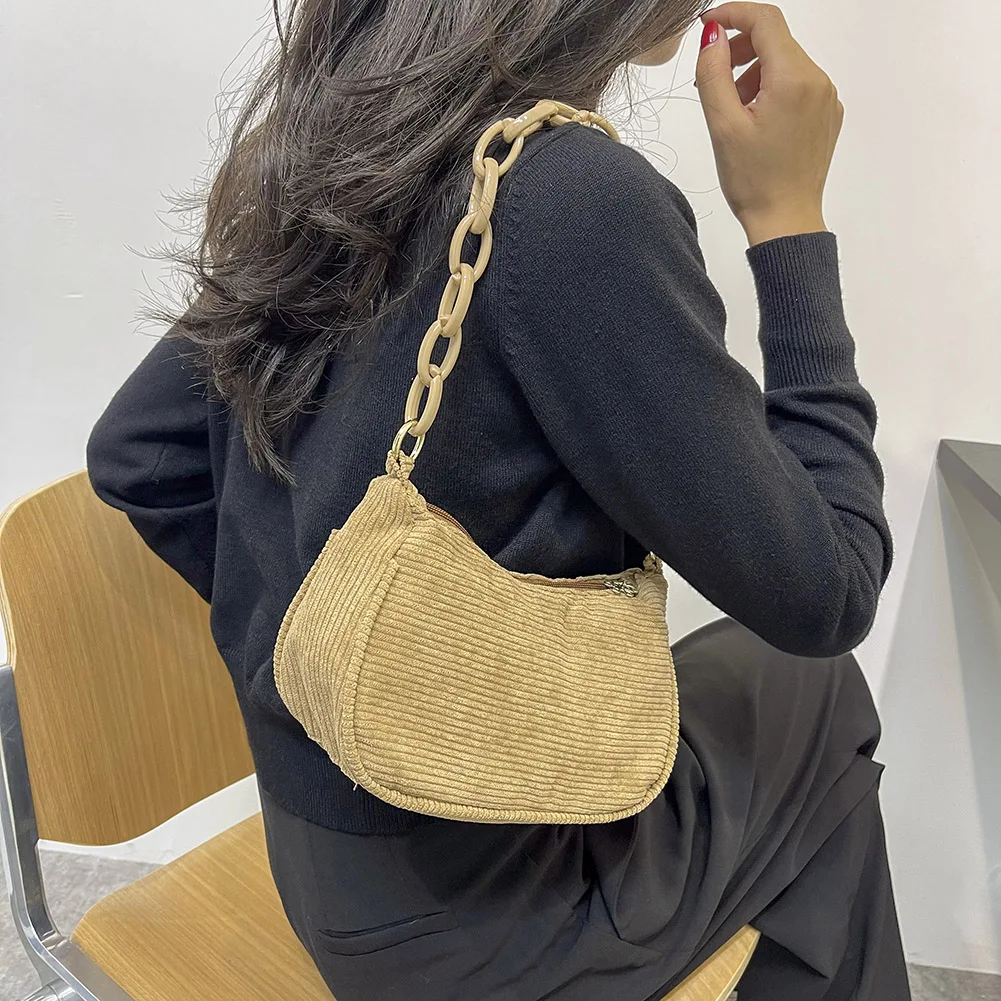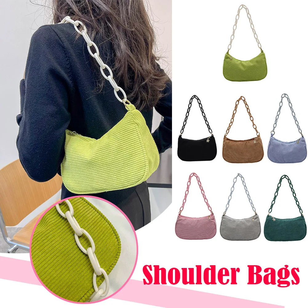 Женская винтажная Вельветовая однотонная сумка на плечо, Дамская Повседневная маленькая сумочка с цепочкой