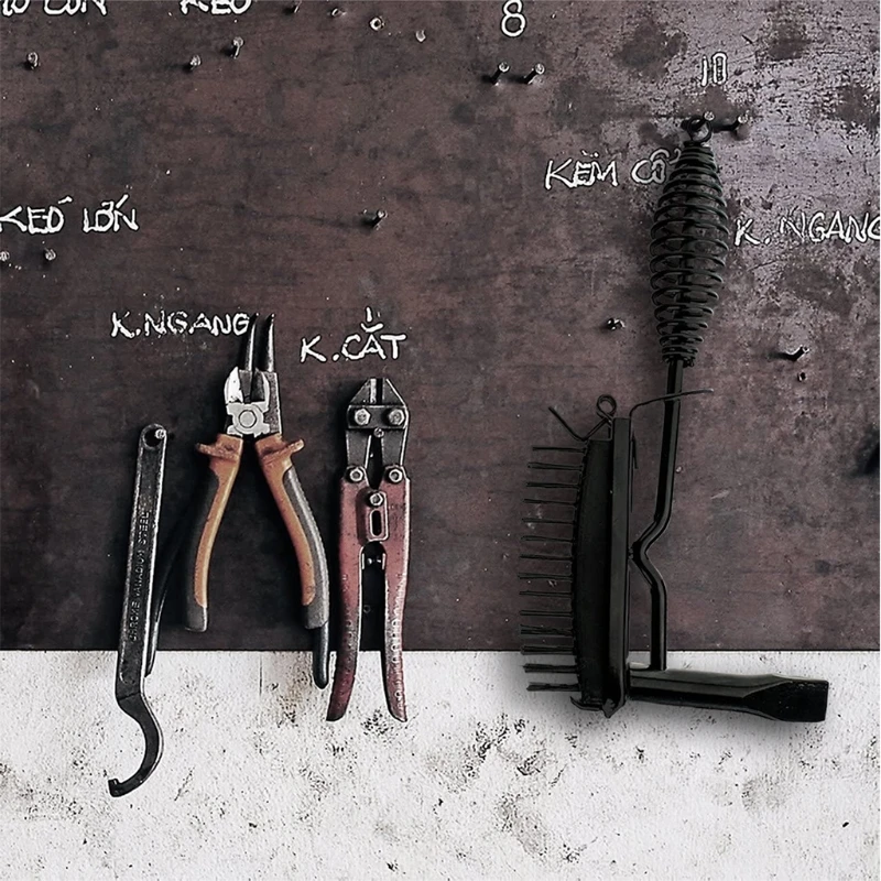 Great for cleaning up excess welding slag build up. You don’t have to switch from one tool to another. Brush is not overly flimsy as the spring is good for reduced shock.