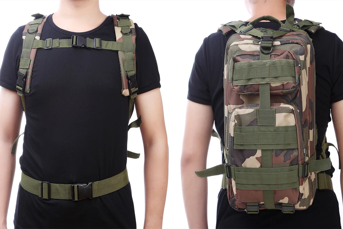 Ремешок и кольцо вокруг рюкзака, возможность добавления мешков и аксессуаров.