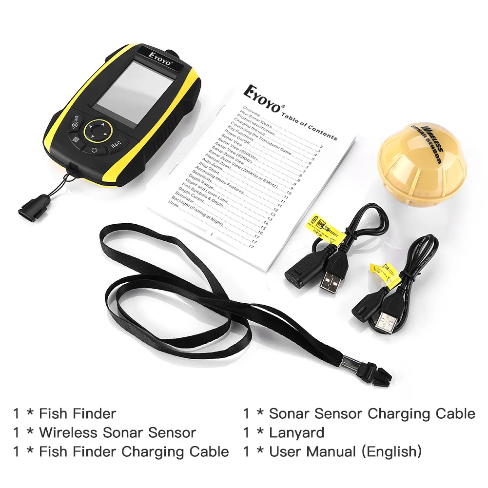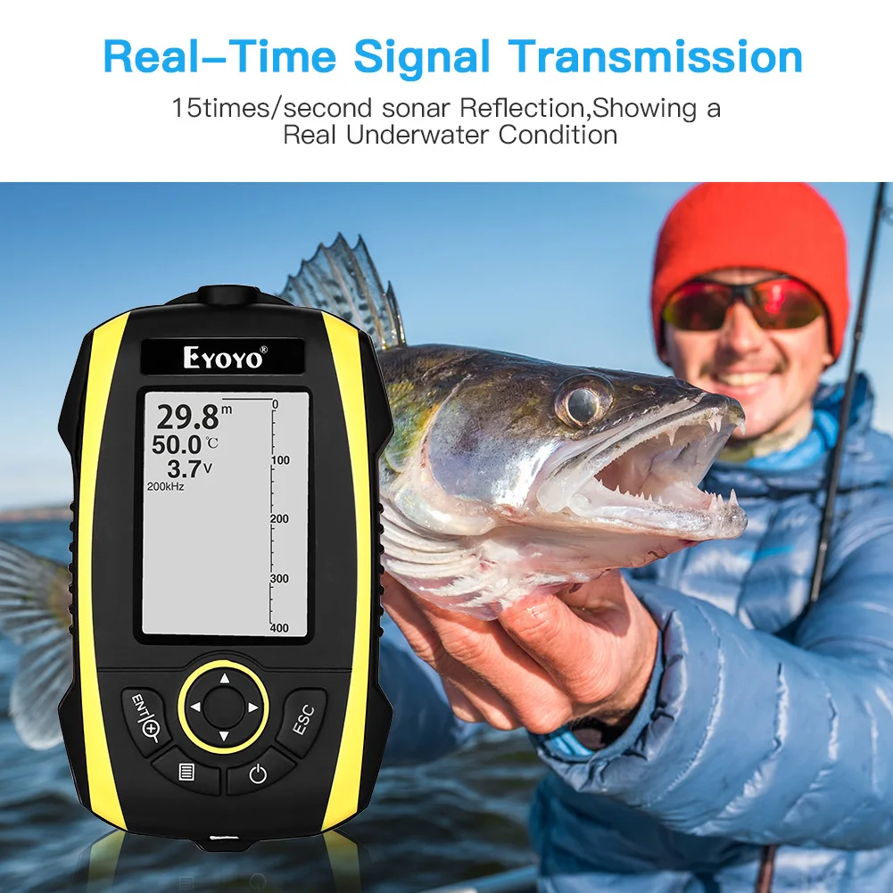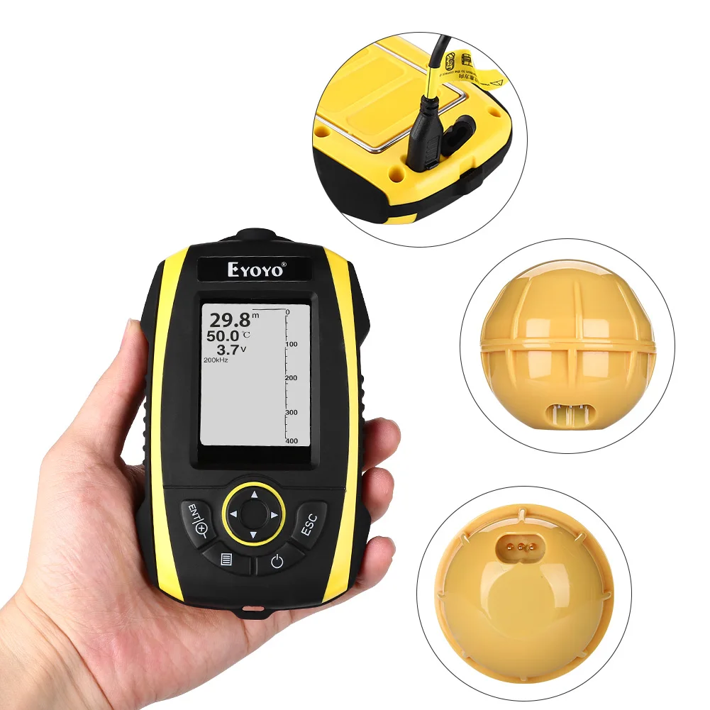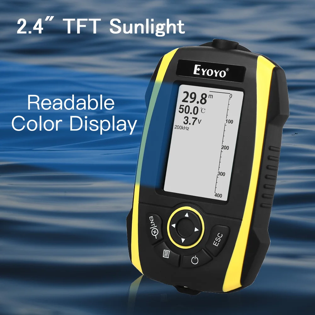 Eyoyo перезаряжаемый 2,4 "беспроводной эхолот Солнечный свет читаемый портативный эхолот цветной TFT 147ft/45m Глубина гидролокатор детектор