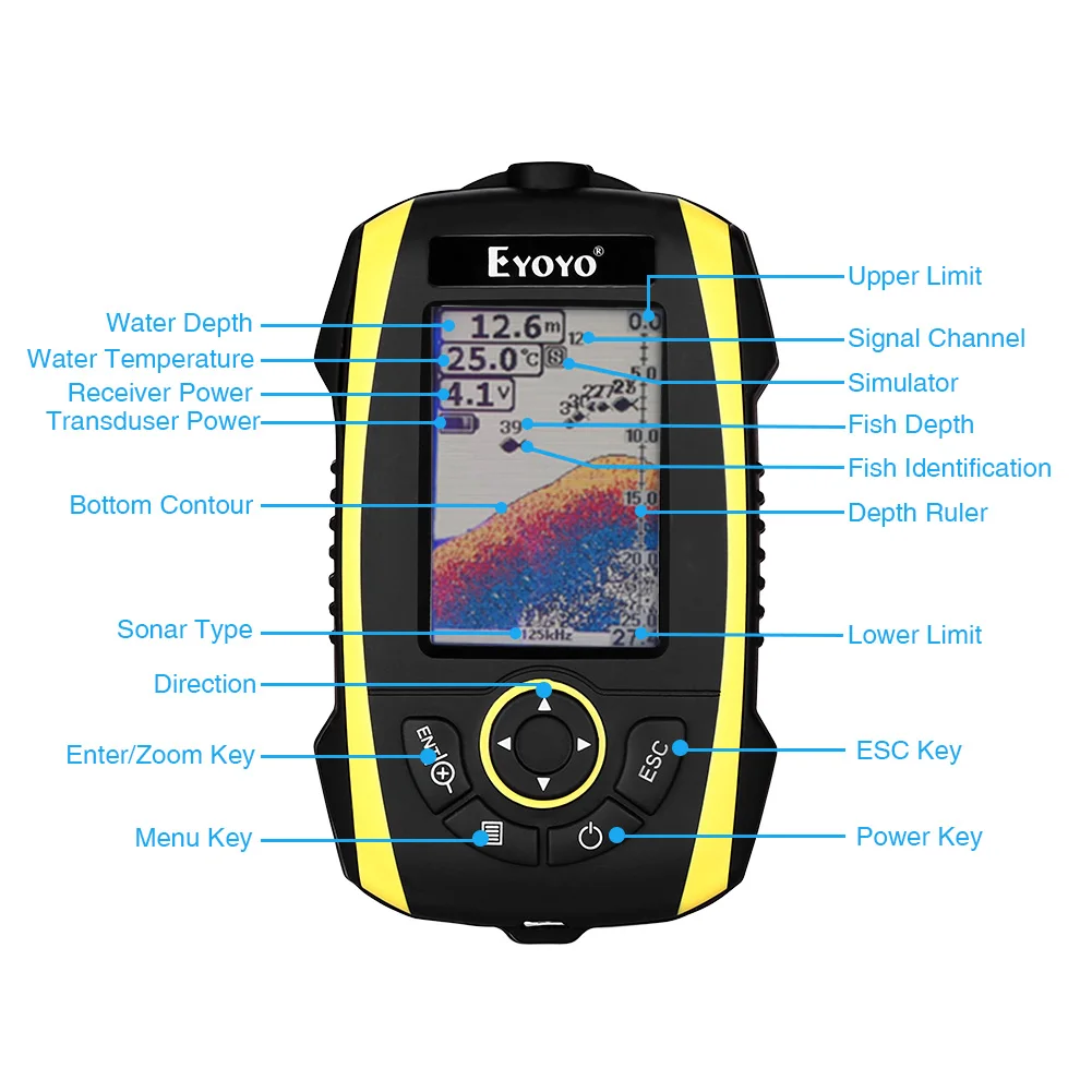 Этот удивительный рыбопоисковик специально разработан для любителей и профессиональных рыбаков, чтобы найти местоположение рыбы, глубину и нижний контур воды, идеально подходит для использования в море, реке, озеро и Фантастика для обнаружения школ рыбы в любом конкретном районе.