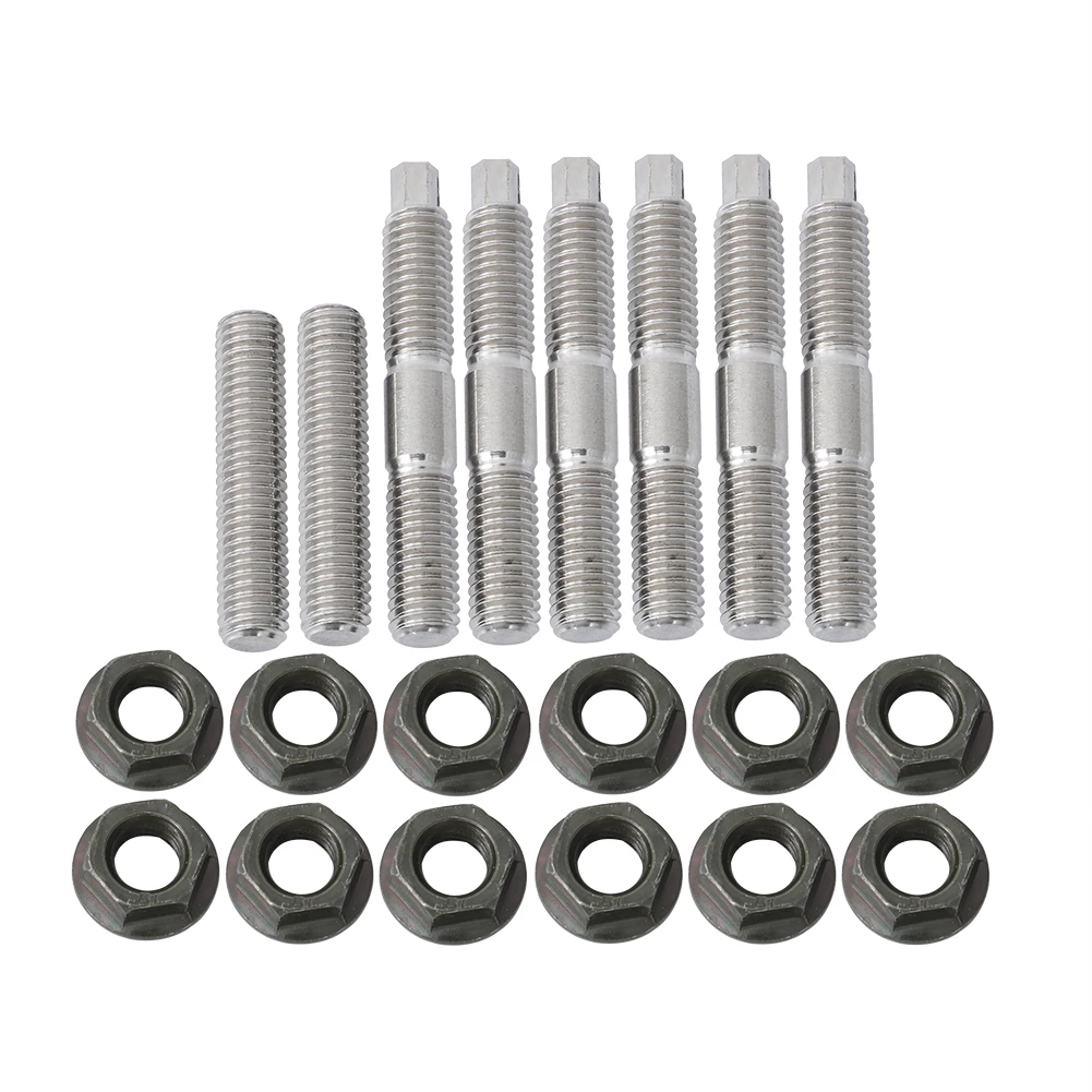 Включает в себя шесть шипов головки цилиндра с шестигранной головкой 6 мм сверху для 6-точечного гнезда для легкой установки. Также включает в себя выхлопные шпильки, которые другие наборы не включают и 12 фланцевых гаек, которые устраняют необходимость в шайбах.
