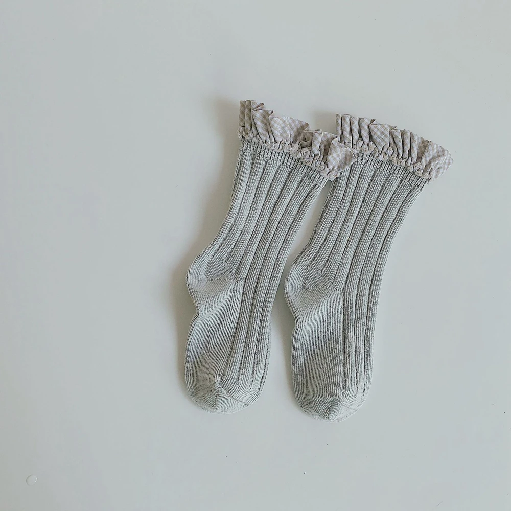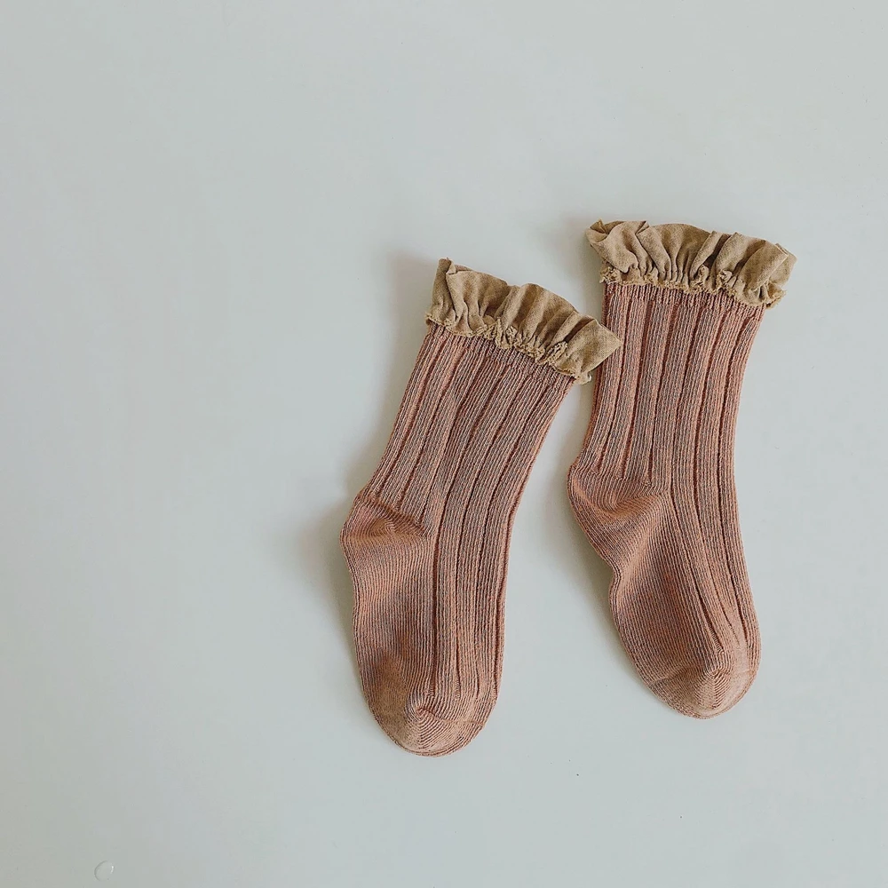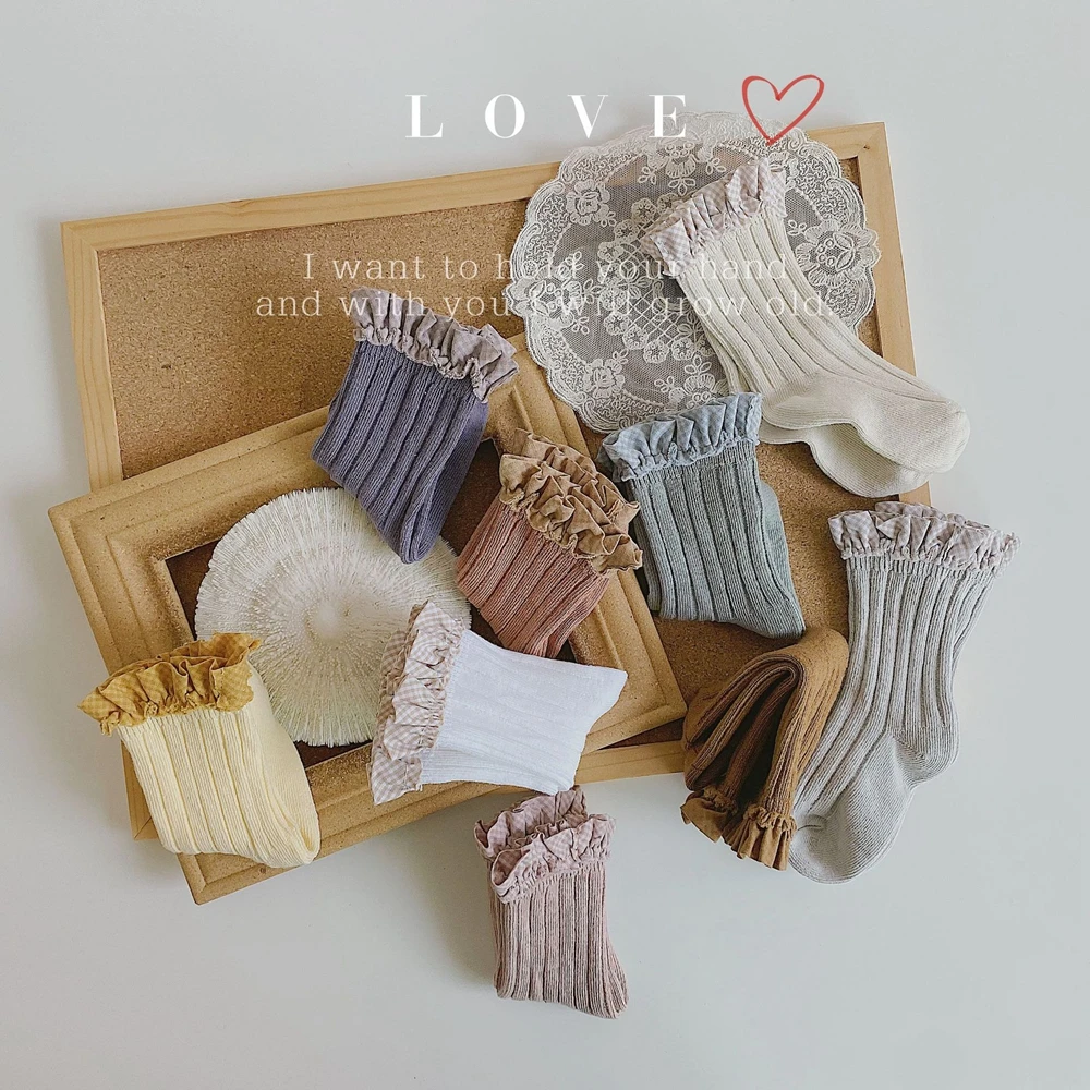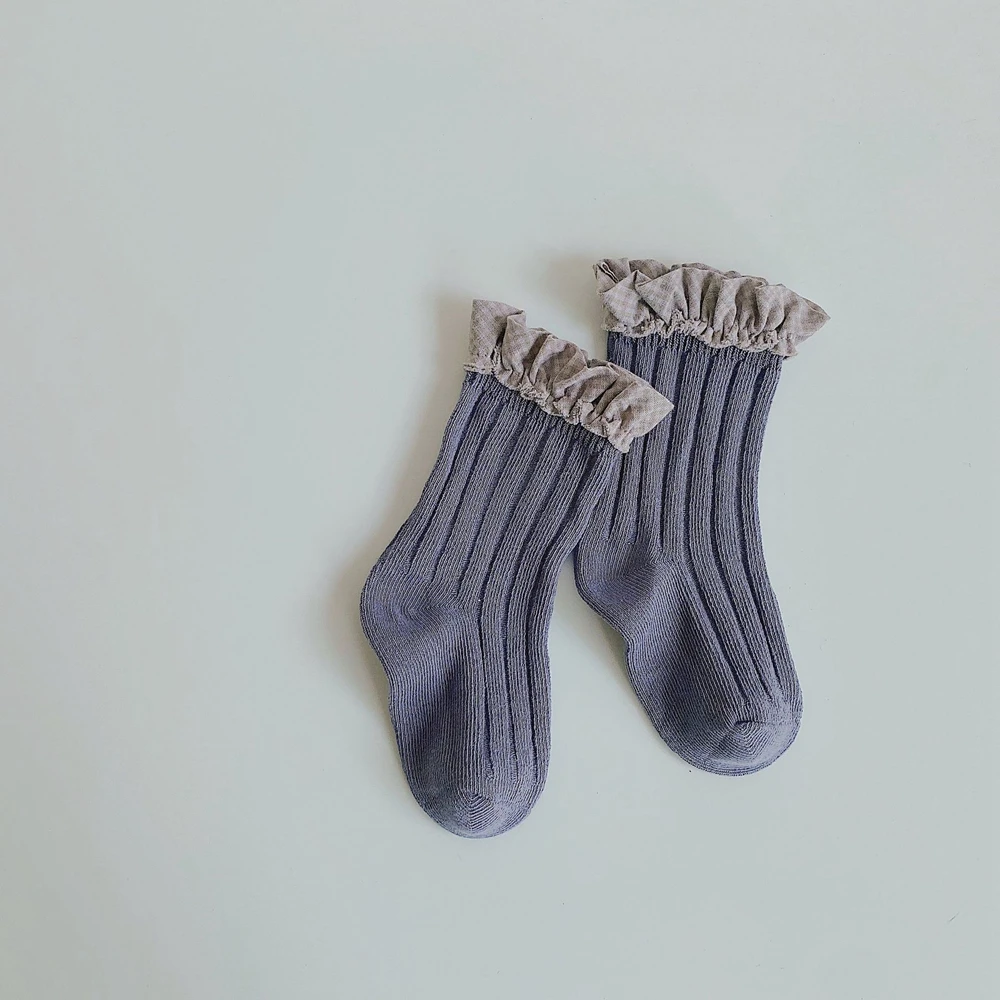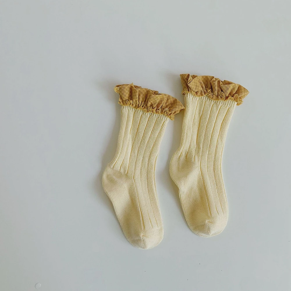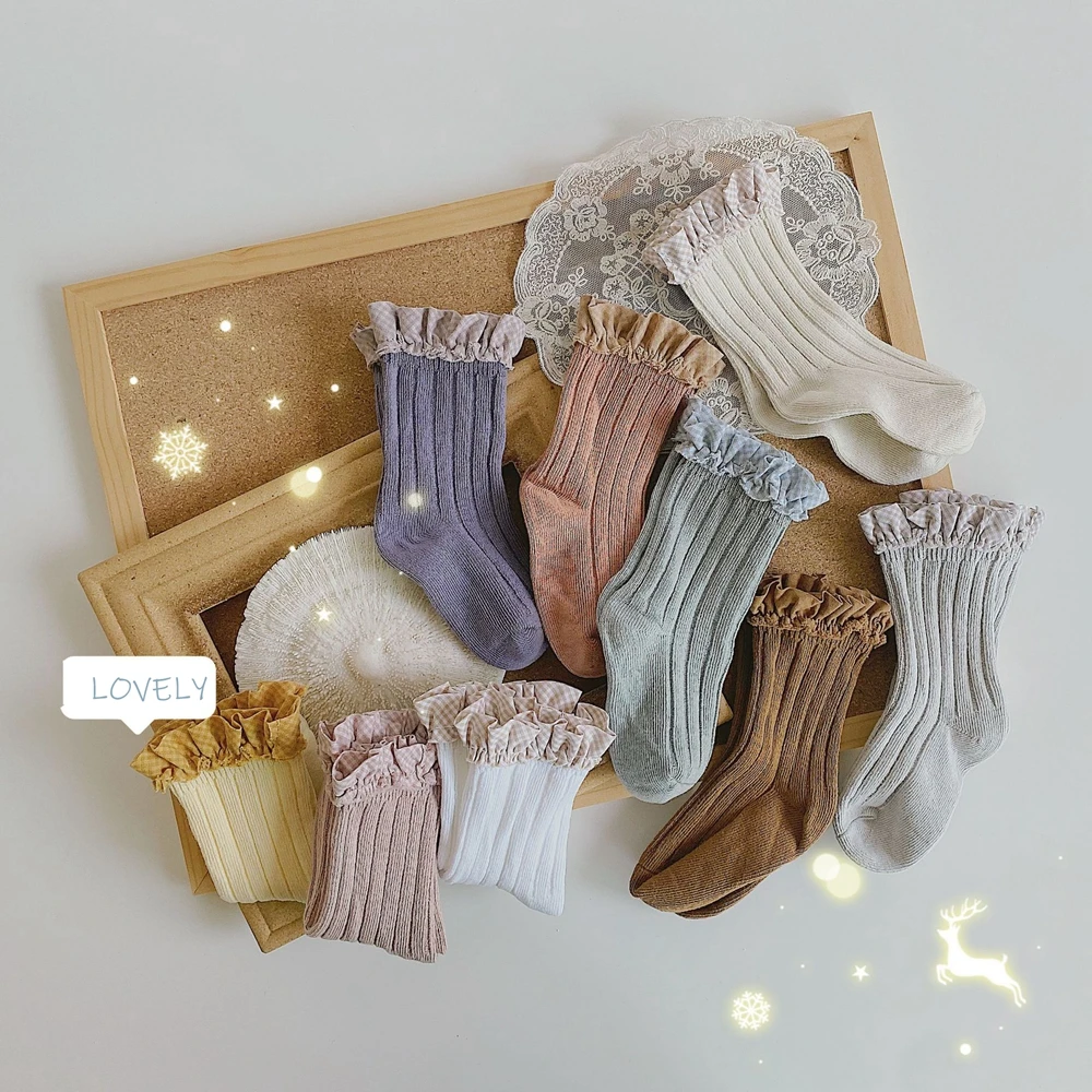 Детские носки для девочек, детские кружевные носки, детские хлопковые Полосатые чулки, Осенние гетры для малышей, носки принцессы в испанском стиле для новорожденных