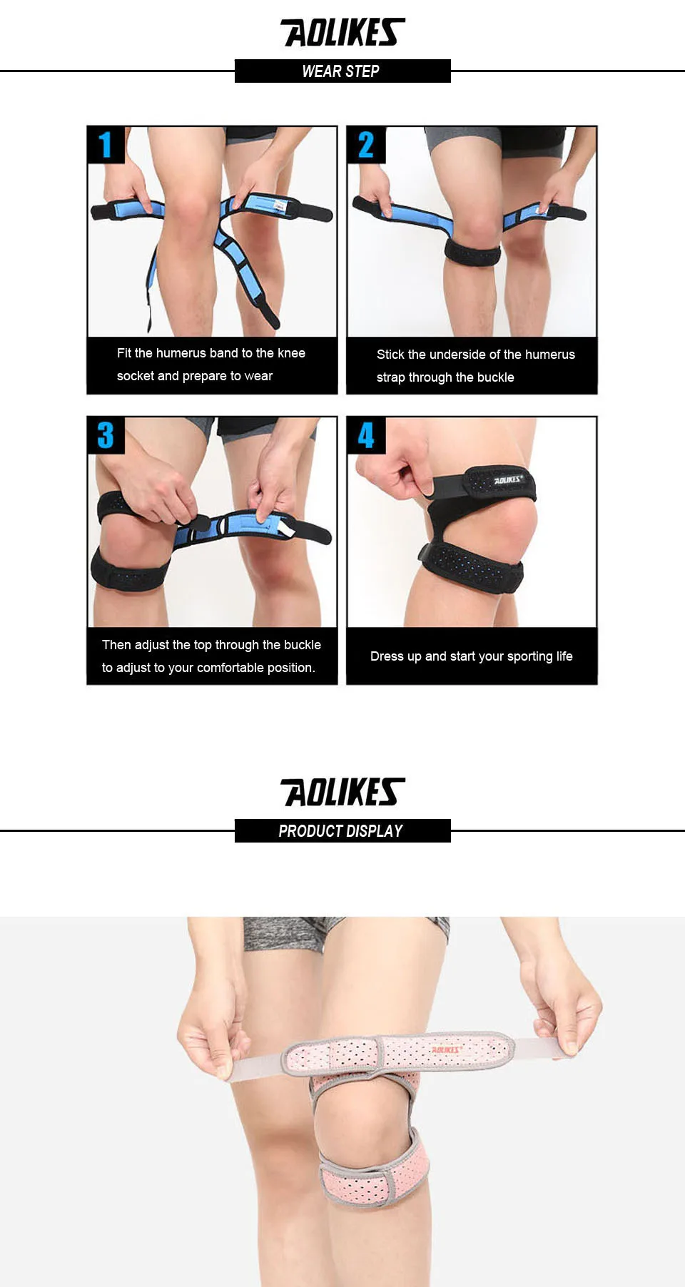 AOLIKES 1 шт. Регулируемый коленной чашечки колена сухожилия ремень наколенник, поддержка профессиональная защита накладка поясом спортивный коленного бандажа