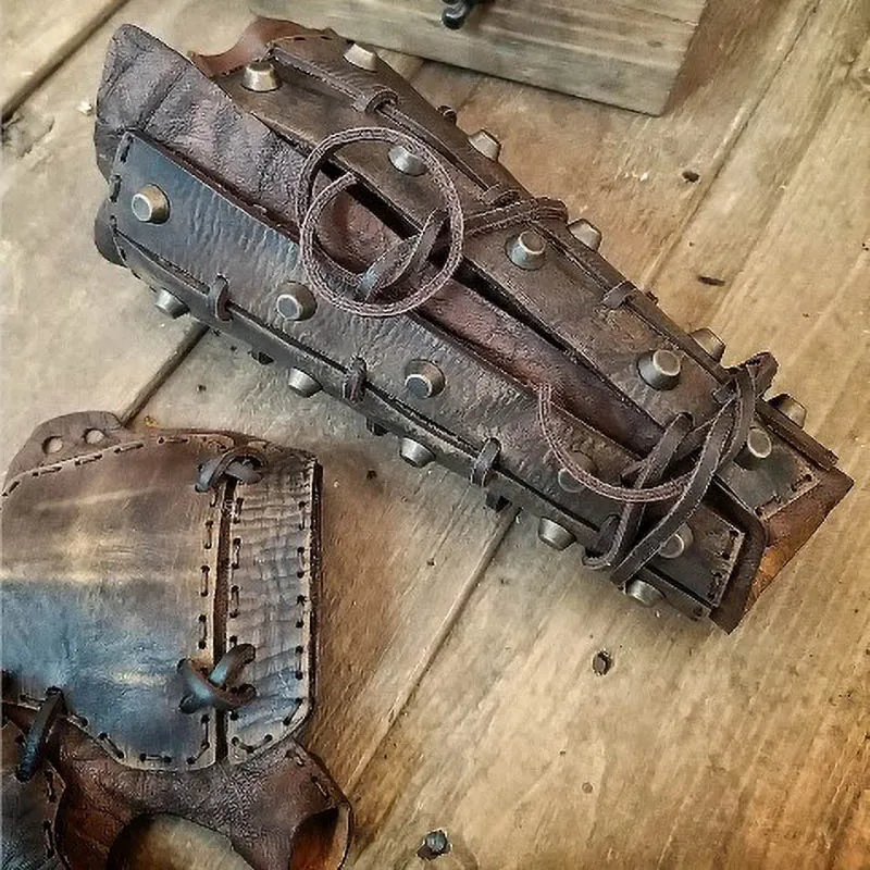 Средневековый Кожаный браслет в стиле стимпанк, самурайский браслет, длинная перчатка, перчатка, пиратский рыцарь викингов, аксессуар для косплея, броня, манжета для мужчин