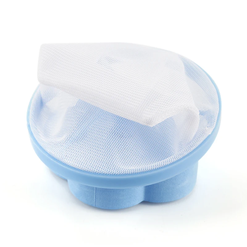 Впитывает одежду в крошку волос, нить, мусор в сетку при стирке в машине.