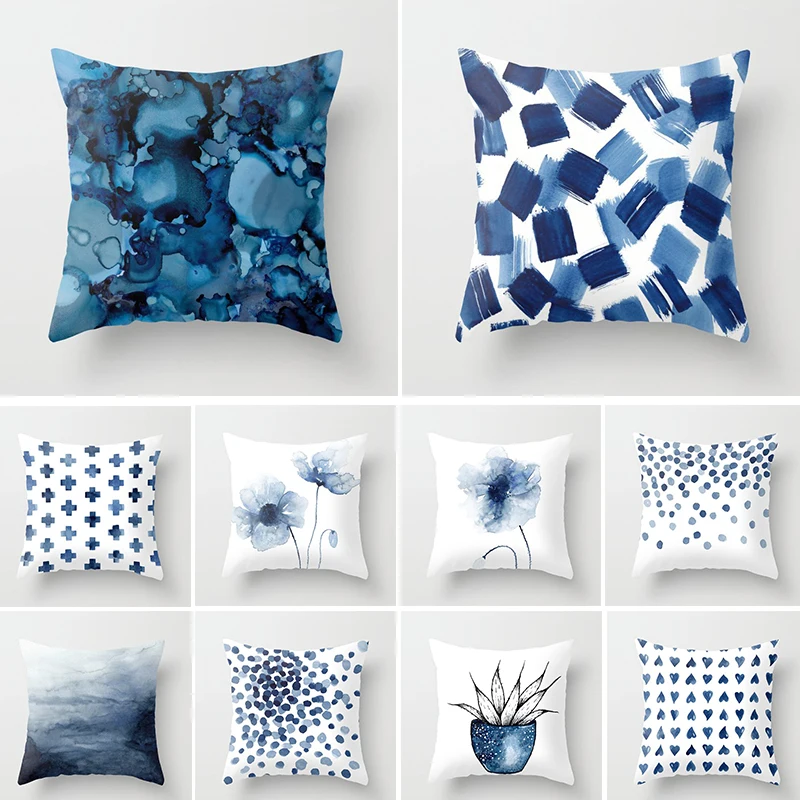 Pillowslip Watercolor Blue Cushion Cover Home Supplies Throw Pillows Covers Car Decor Waist Throw Cushion Cover Pillow Case