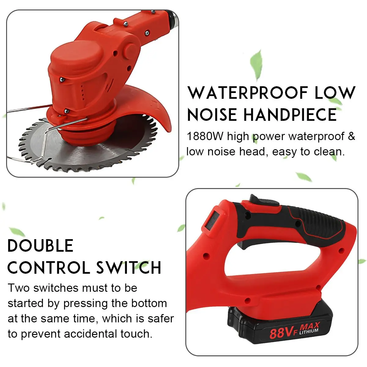 -Двойной переключатель управления, два переключателя должны быть запущены нажатием нижней части в то же время, что безопаснее, чтобы предотвратить случайное касание.