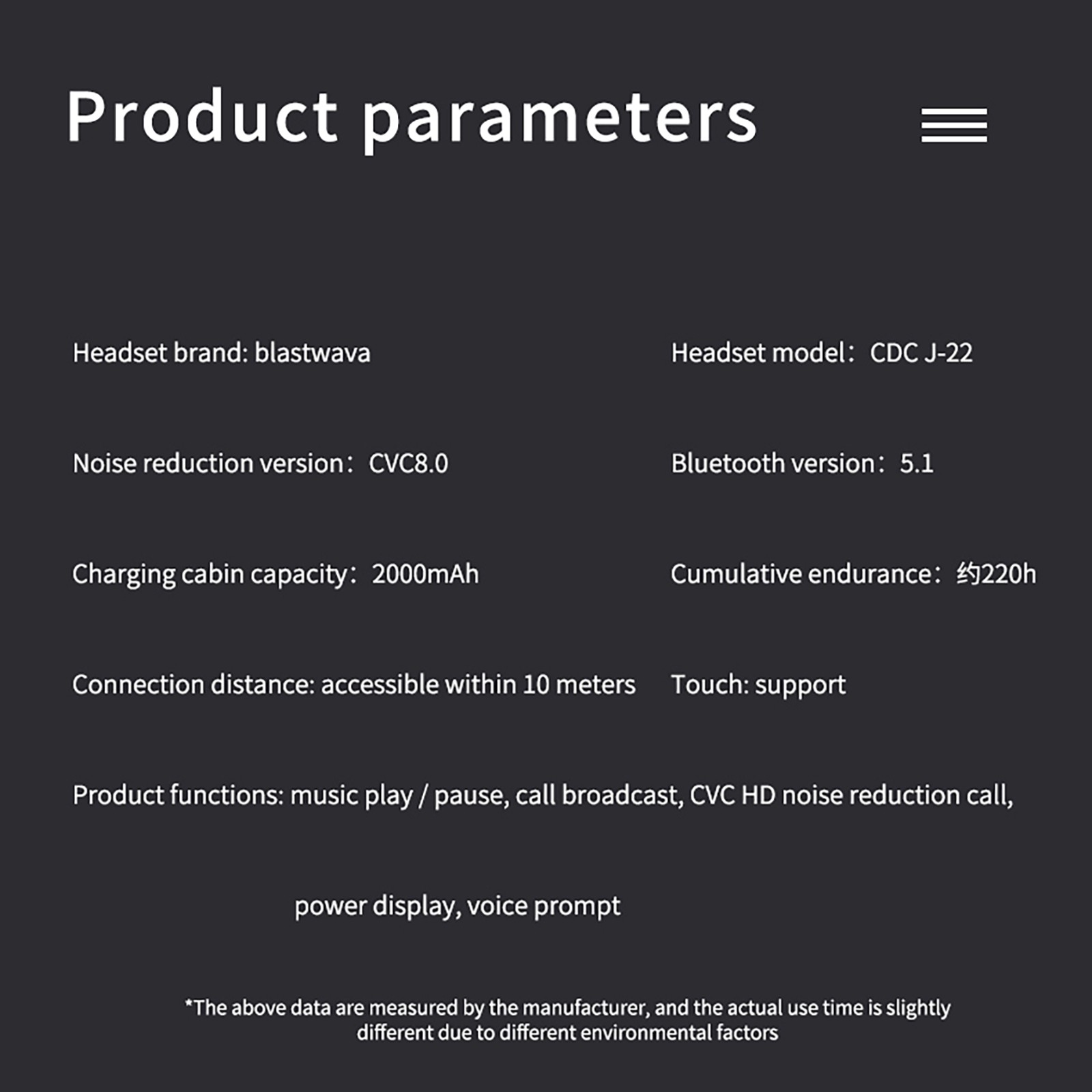 Емкость аккумулятора: наушники: 50 мА · ч, грузовая коробка: 2000 мА · ч (включительно)