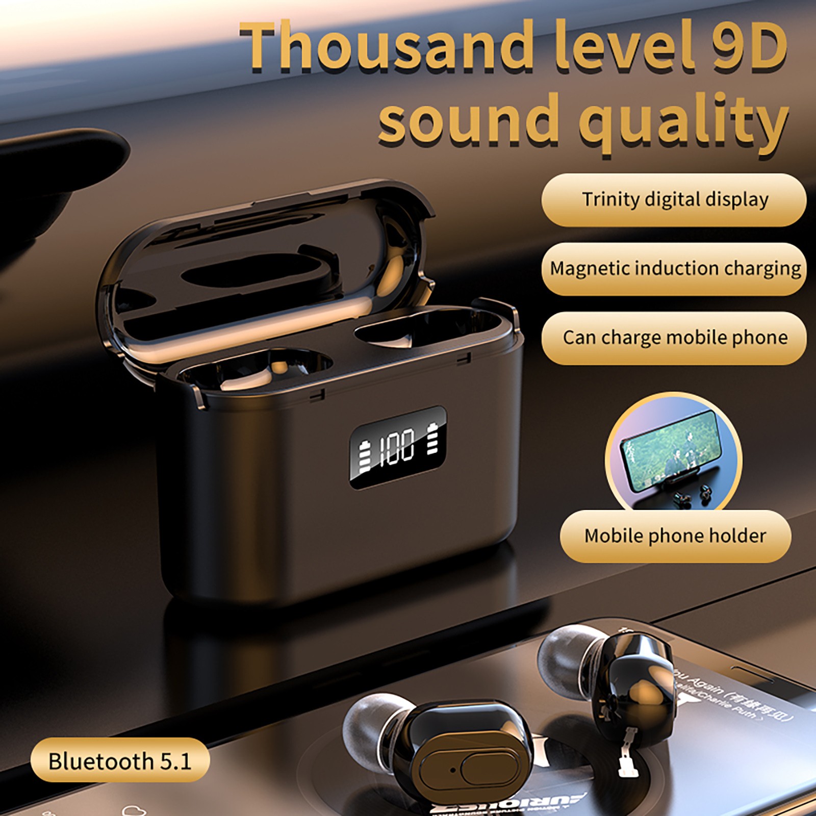 Беспроводная связь J22 Bluetooth 5.0 Гарнитура HD 9D стерео с цифровым дисплеем