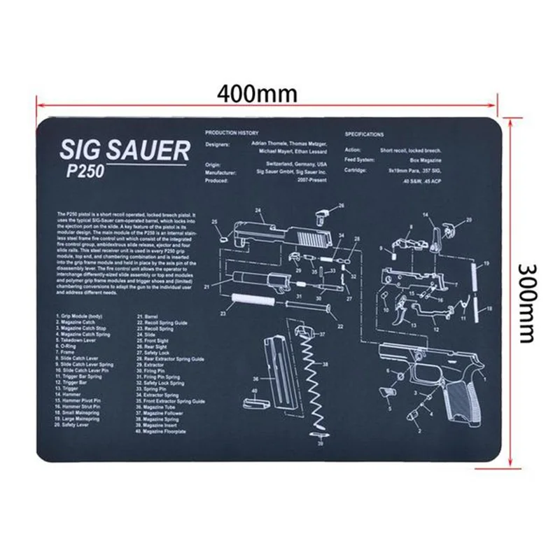 3. Простой в использовании-этот коврик для чистки поставляется с обзором истории пистолета, а также простой в использовании схемой частей, которая представляет Ваш пистолет, и Он катится для удобного хранения