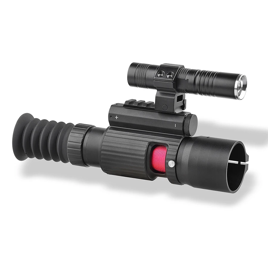 2. Для того, чтобы наши пользователи имели лучший опыт в области ночного видения, эффективное расстояние для прицеливания объекта составляет 300-500 метров в полной темноте, без винтовых скопов, подключенных, и 150-200 метров с винтовыми скобами. Обычно существует два типа фонарика, которые являются светодиодный инфракрасный и лазерный инфракрасный, фонарик, который мы используем, является лазерным инфракрасным для реализации хорошего качества изображения и дальнейшего наблюдения расстояния.