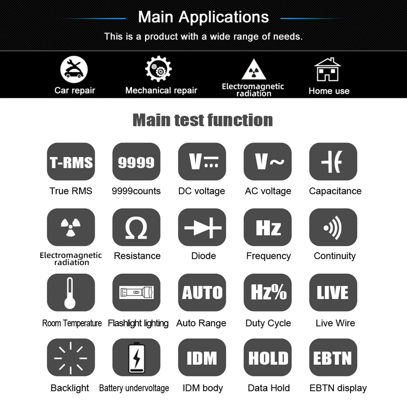 Высокоточный дисплей: автоматическое определение диапазона с интеллектуальным мультиметром на 9999 отсчетов с функцией удержания данных, а цветной ЖК-дисплей 3,5 дюйма EBTN значительно улучшает качество чтения, значение очень легко считывается даже при солнесветильник или при плохом освещении.