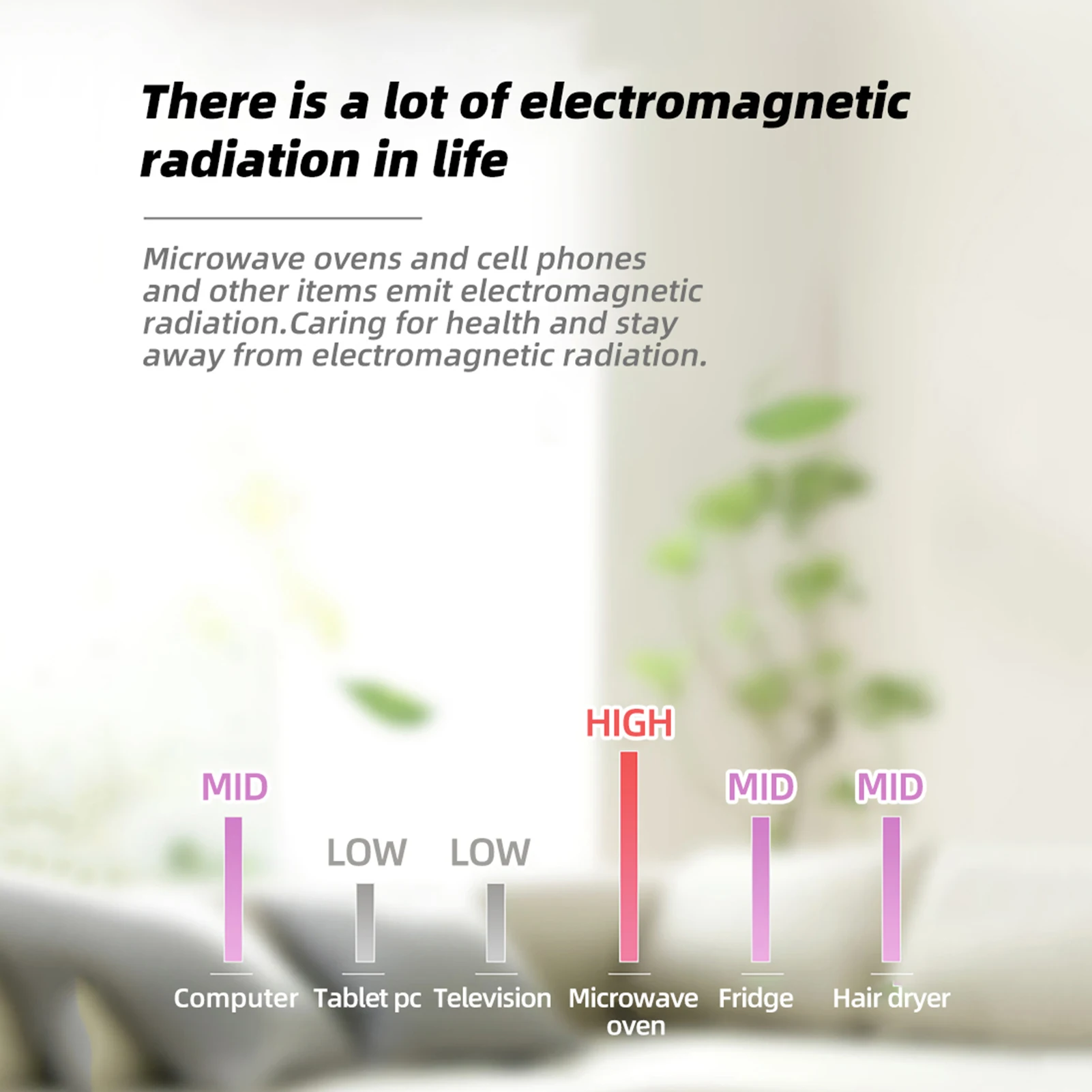 Обнаружение электромагнитного излучения в домашних условиях: зона верхней индукции для определения высокочастотного электромагнитного излучения, излучаемого микроволновой печью, электрическим вентилятором или кондиционером. И имеет значок и 3-цветную аналоговую гистограмму, отображаемую при распознавании электромагнитного излучения, зуммер звучит одновременно.