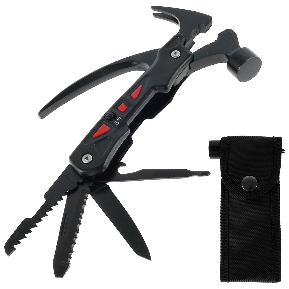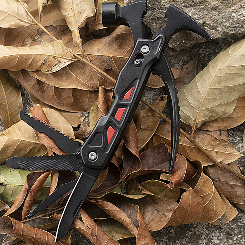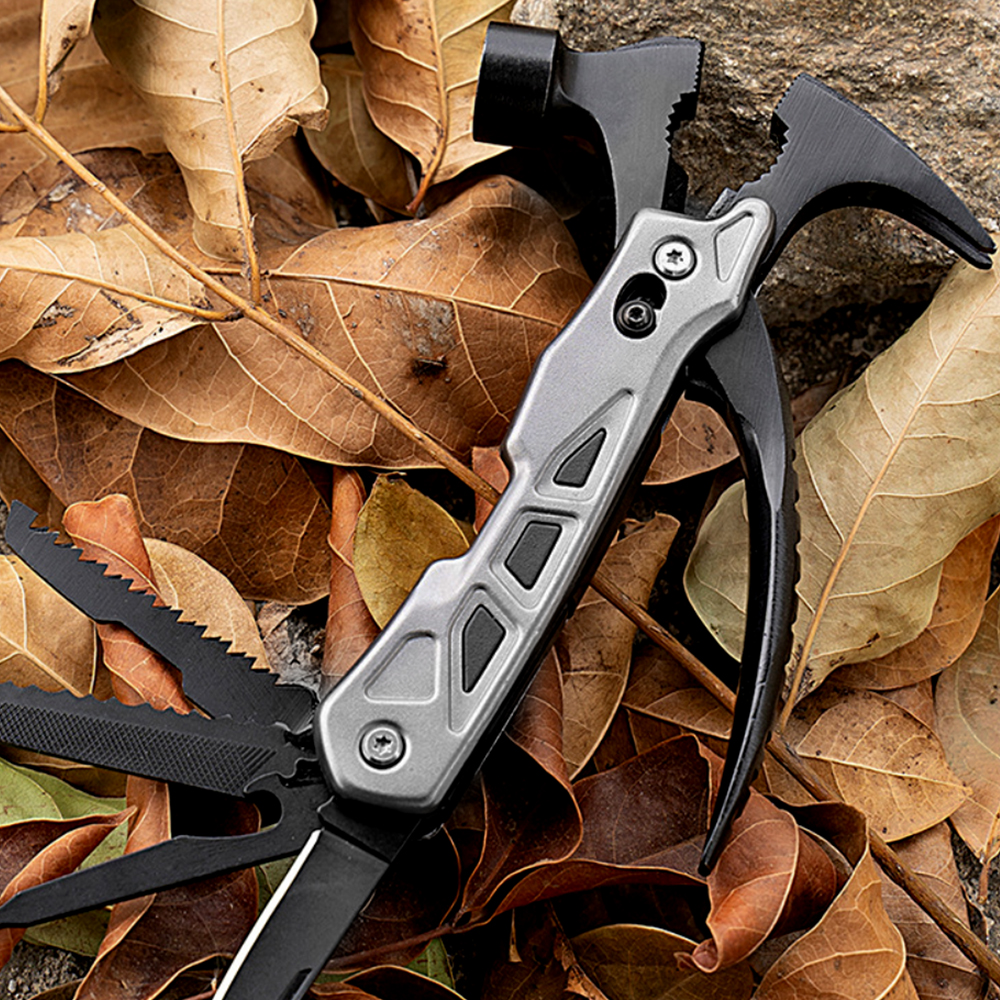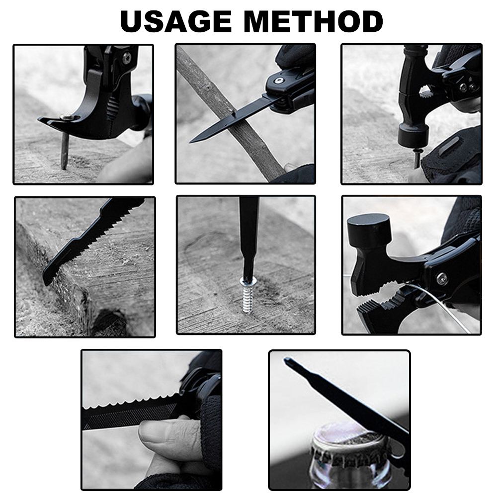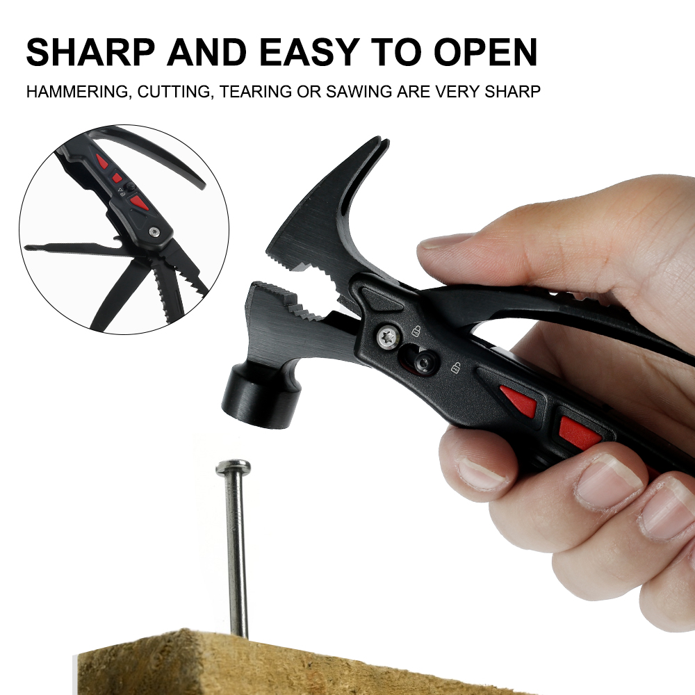 【Все в одном инструменте 】многофункциональный инструмент имеет мини-молоток, подборщик ногтей, плоскогубцы, тиски, резец проволоки, нож, двухрядную пилу, зубчатый нож, пилку, отвертку с плоской головкой, отвертку Phillips, открывалка для бутылок и так далее.