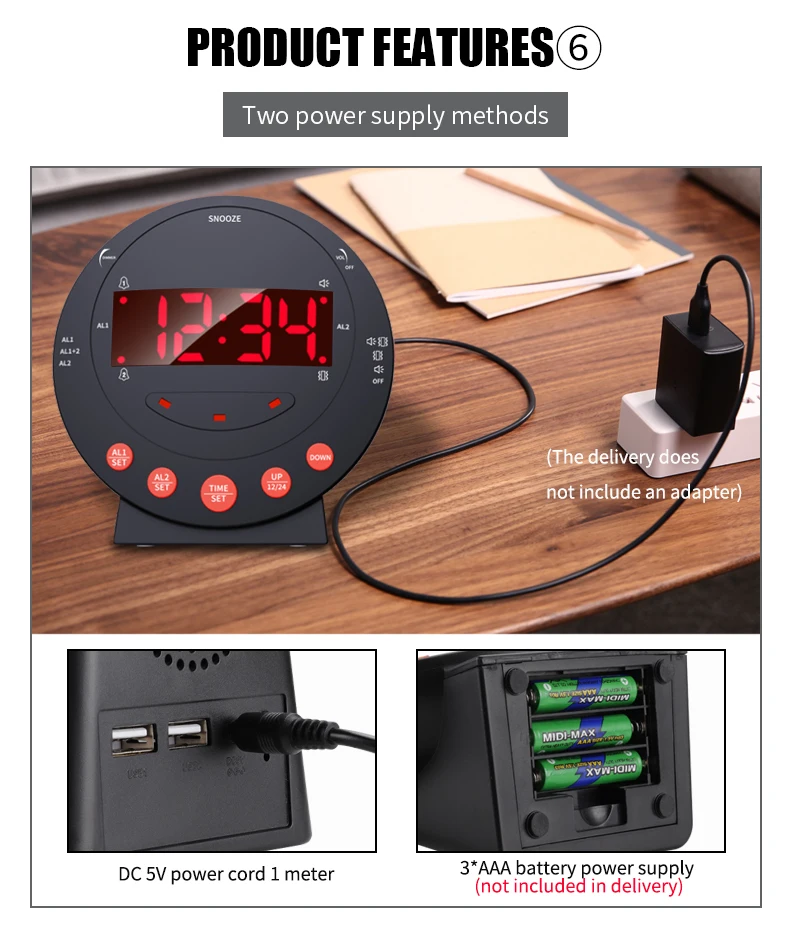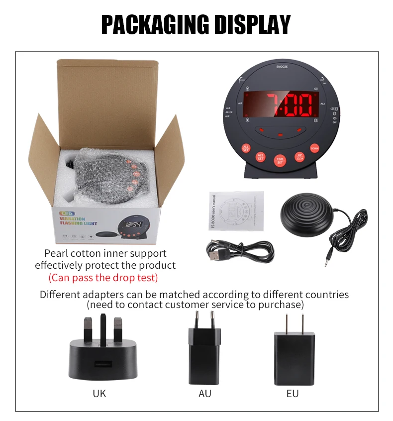 3в1 вибрирующий сигнальный мигающий светильник светодиодный Будильник Повтор шейкер для кровати Пробуждение звон для тяжелых шпалов глухие старшие USB зарядное устройство