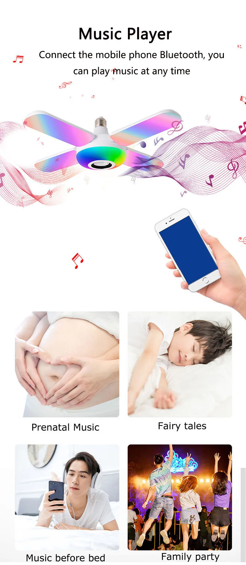 1 шт. Светодиодная лампа четырехлистная музыкальная лампа цветная интеллектуальная аудио Складная лампа + пульт дистанционного управления деформируемые потолочные светильники