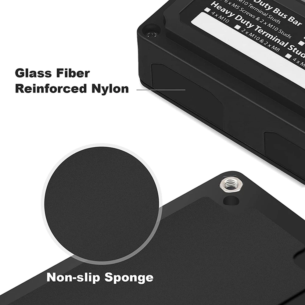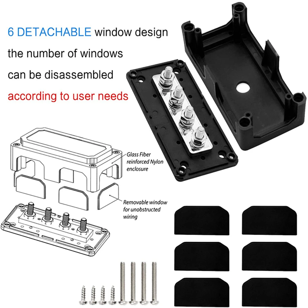 * [Высокое качество]: материал шины: распределительный блок батареи изготовлен из латуни и никелирован, с хорошей электропроводностью и сильным сопротивлением ржавчине. Основа изготовлена из нейлона-стекловолокна, армированного для защиты вашей безопасности, обеспечивая высокую механическую прочность и долговечность.