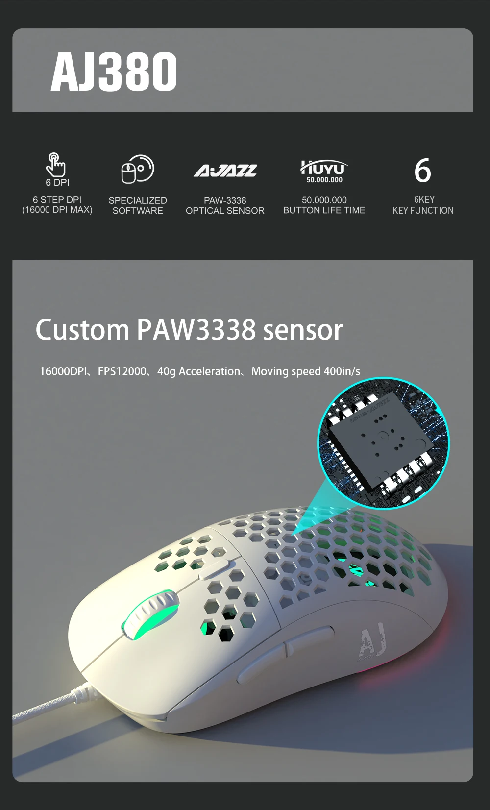 Hot AJ380 Lightweight Wired Mouse 16000DPI for Professional E-sport Gaming Mouse Adjustable 6 DPI Mice for Notebook PC Laptop