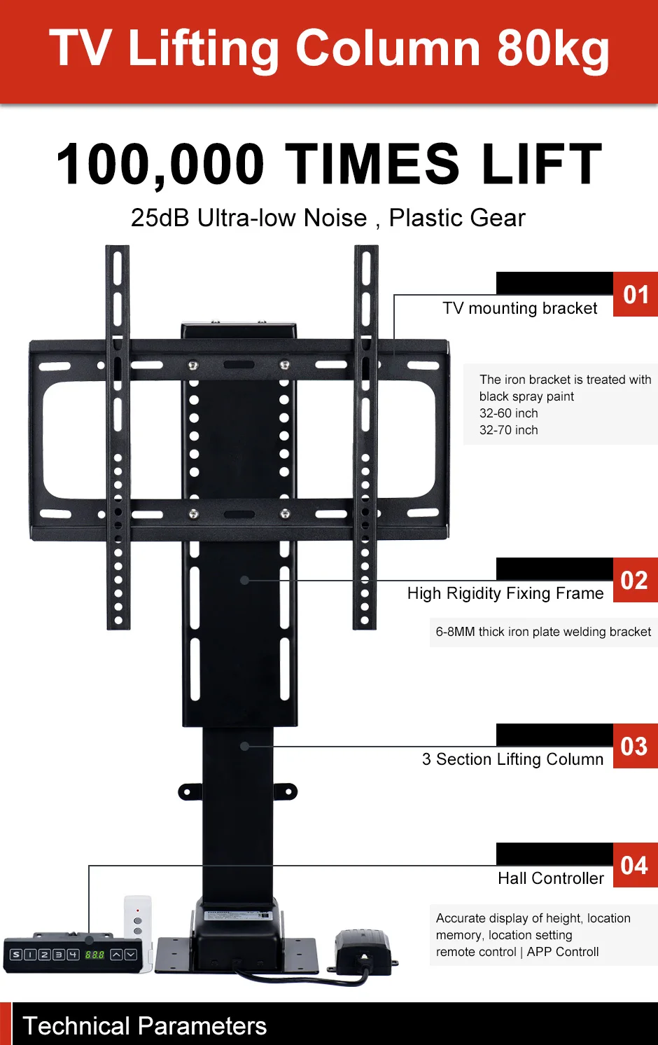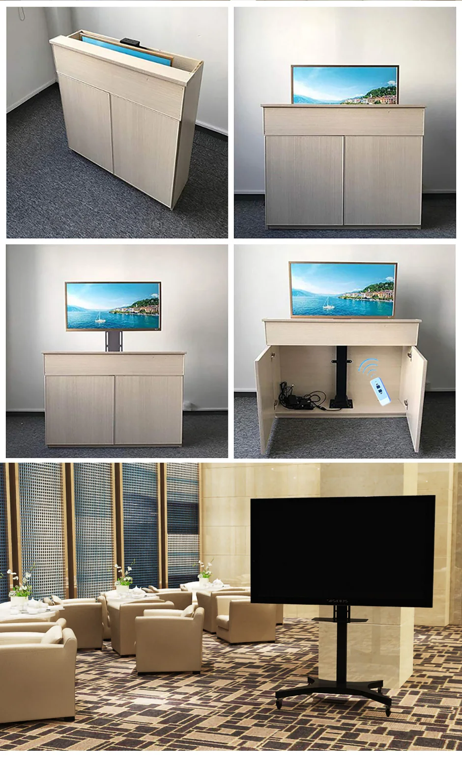 DHLC TV lift разделены на четыре типа, есть кабинетные ТВ подъемники TV 575 TV 710, мобильные ТВ подъемники TV 800Y и Двухстоечные ТВ подъемники TV 710Y-2. Продукты эргономичные, регулируемые по высоте, и может управляться мобильный телефон Bluetooth пульт дистанционного управления и пульт дистанционного управления. Подходит для 32-75 дюймовых светодиодный телевизоров. Лифт используется в гостиницах, яхтах, мультимедийных конференц-залах, выставочных залах и других местах. Когда вы хотите наслаждаться телевизионными программами, телевизор поднимется из шкафа телевизора через пульт дистанционного управления; Это отличный аксессуар для оборудования офисных домов: продукт изготовлен из стали и линейных приводов, И ХОДОВОЙ шум ниже через линейную передачу подшипника; Структура продукта разумная и внешний вид красивый. Он прост в эксплуатации, гибкий и удобный и надежный в работе.