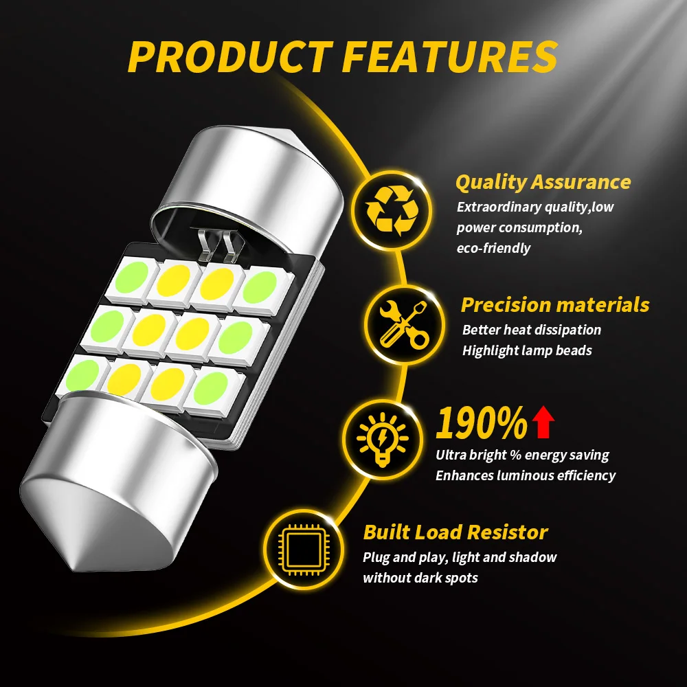 -Socket type: C5W Festoon 31MM/ C5W Festoon 36MM/C5W Festoon 39MM/C5W Festoon 41MM