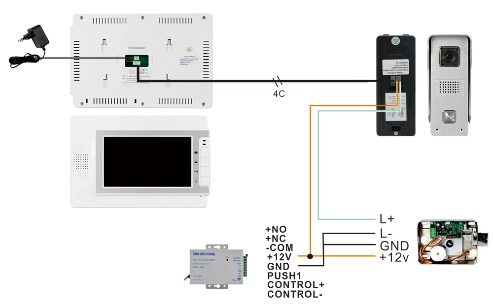 Этот видеодомофон может быть подключен к различным электрическим замкам (Электромагнитные замки, электрические замки, электрические болтовые замки), чтобы обеспечить удобство для вашей жизни.
