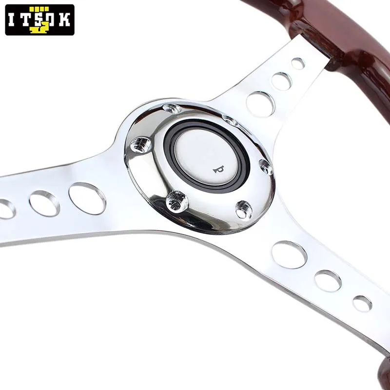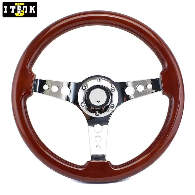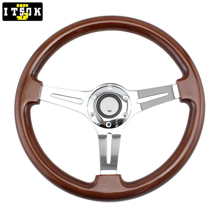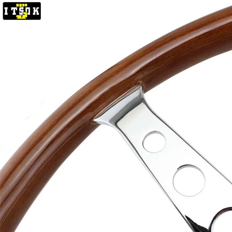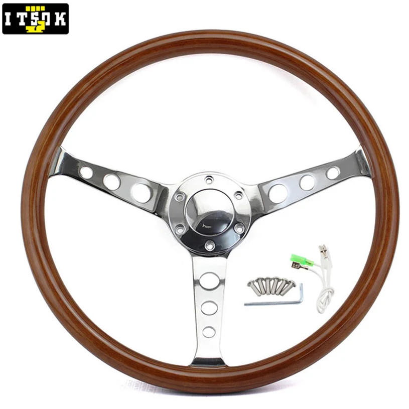 15 дюймов подлинное твердое дерево руль 380 мм с длинным отверстием Серебро Хром Железный спица Универсальный НАСТОЯЩИЙ ДЕРЕВЯННЫЙ Volante 15 дюймов Винтаж