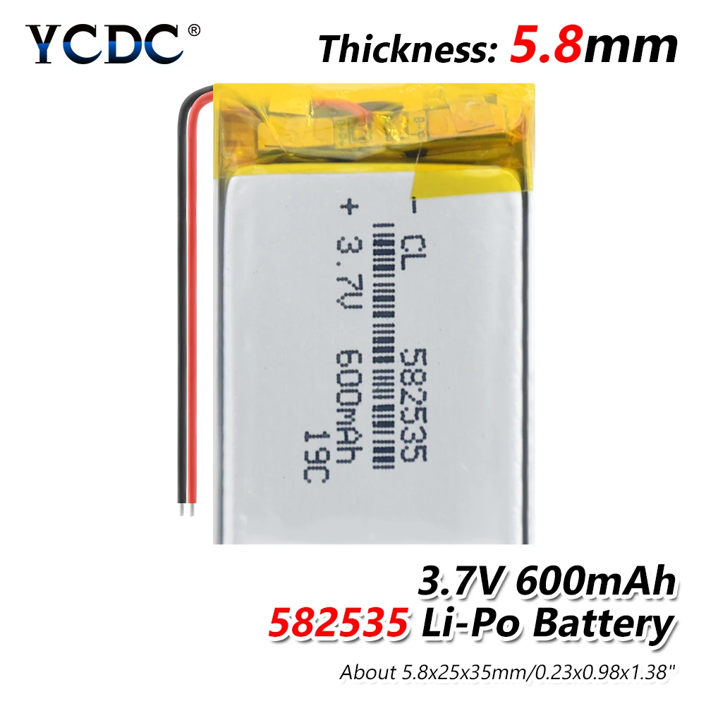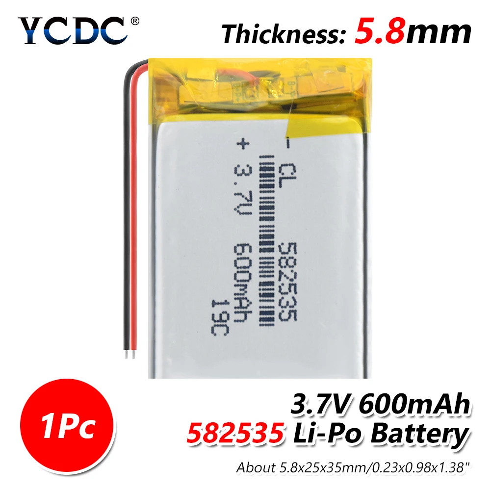 1/2/4 шт. перезаряжаемый 3,7 V 600 мА/ч, литий-ионный аккумулятор 582535 литий-полимерные батареи для MP3 MP4 MP5 BLUETOOTH гарнитура GPS