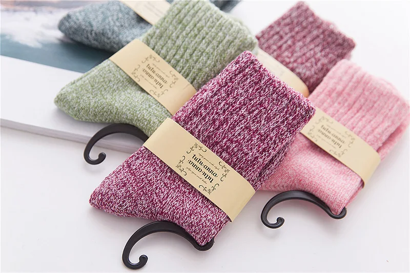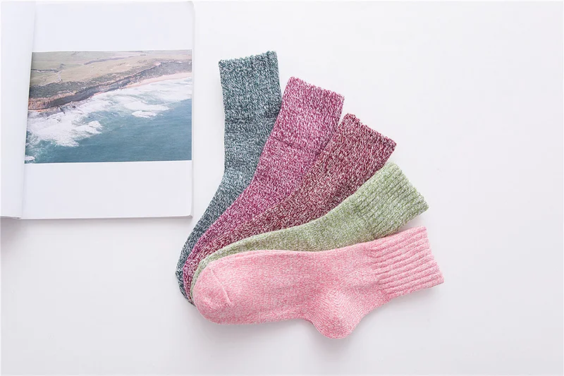 5 пар женских носков 2018 Новые однотонные зимние термо кашемировые носки женские формирующие носки